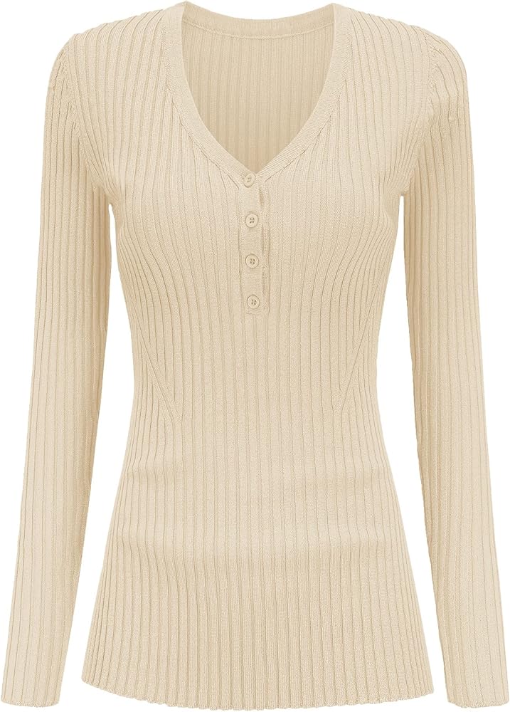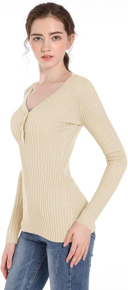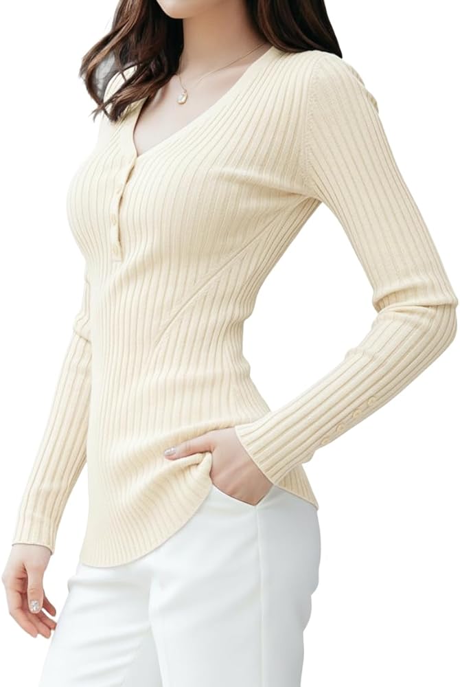 Sweaters for Women Featuring Cute V neck, Long Sleeves, Button up and Form-fitted Silhouette.