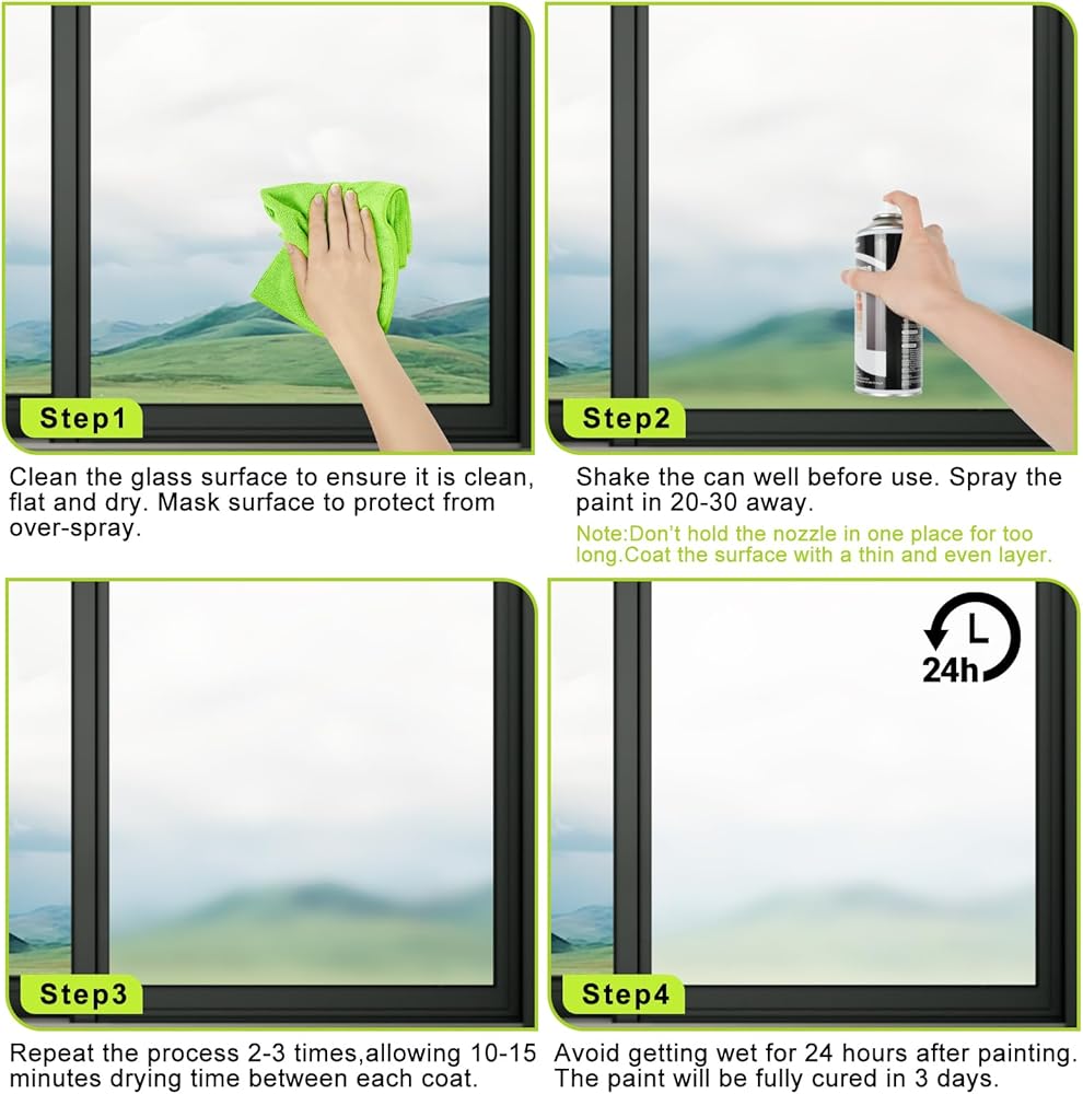 Easy to use - Even even beginners can paint it evenly, and avoiding drips and peeling. Be sure to clean and prepare the glass surface well and let it fully dry. You can get a translucent look by applying a single coat. The best-frosted look however is only achieved with 2-3 coats. You can apply a coat on your glass, wait 10-15 minutes, and then apply another one.