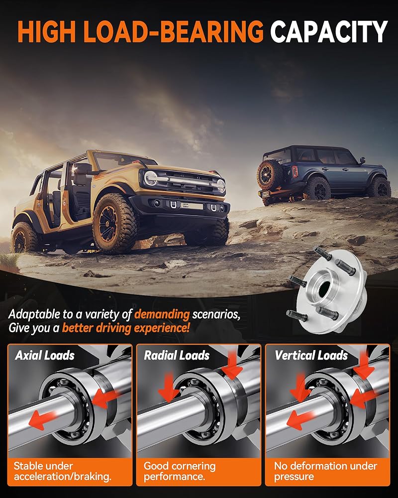 【 Product Upgrade】 The wheel hub bearings are well sealed, compact in structure, and have high load-bearing capacity; Reduced bearing shaking, low noise, and improved driving comfort; Bearings have higher reliability and longer service life.