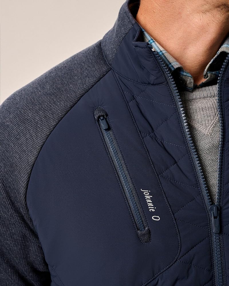 Lightweight and layerable, this jacket designed with a fleecy interior pairs a quilted body with knit sleeves and offers lots of stretch to move across your cool-weather wardrobe.