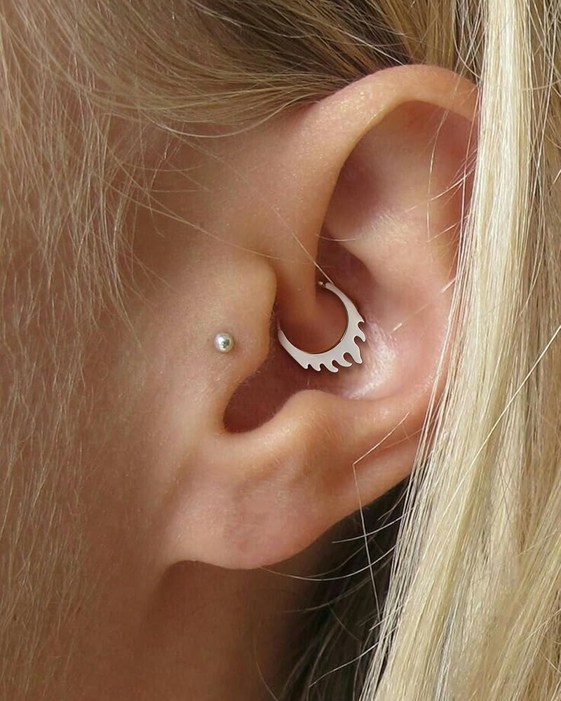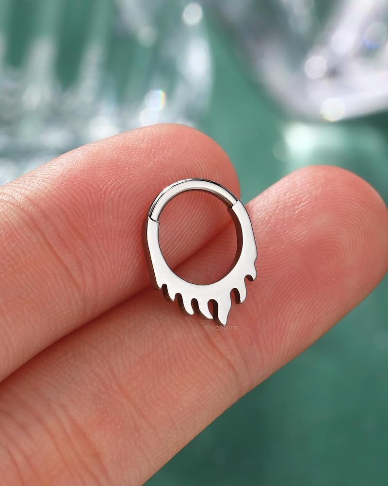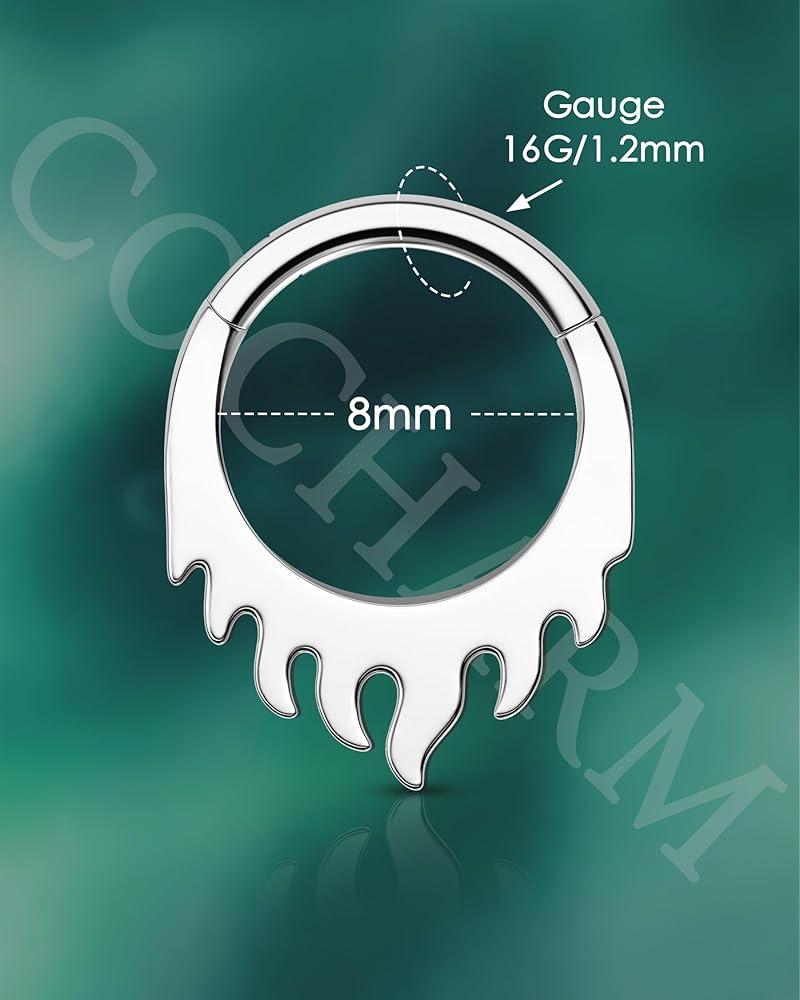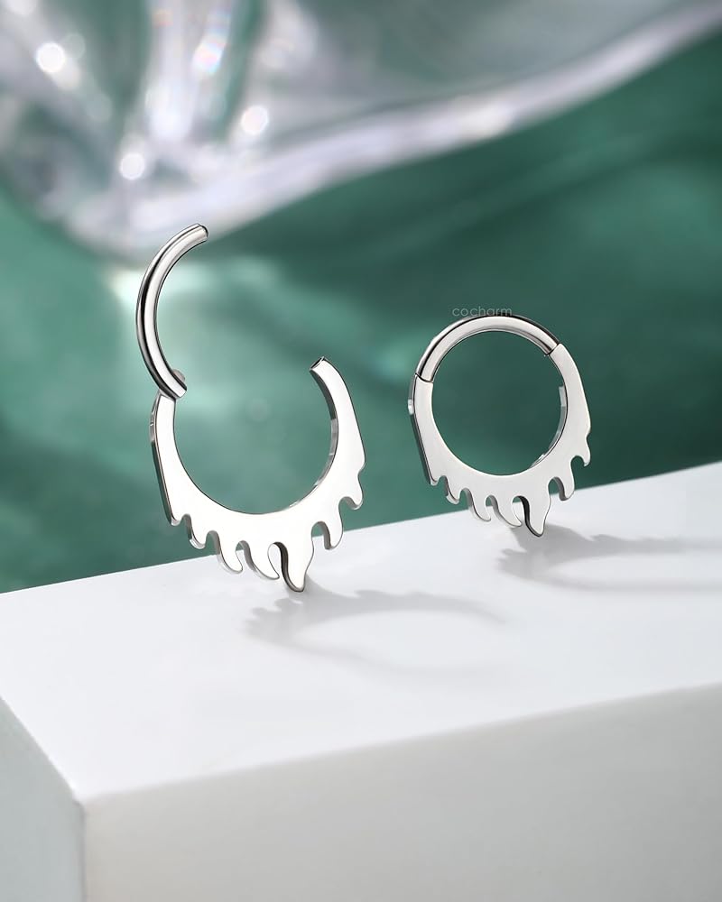 COCHARM Minimalist Flame G23 Solid Titanium Septum Rings 16G Setpum Jewelry Dainty Helix Daith Earrings for Women Cute Helix Daith Piercing Jewelry