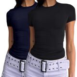 Sexy Casual Summer Tops: This womens summer tops, short sleeve, crewneck, It is an essential and perfect match for your wardrobe, and the two piece set is more affordable, Solid colors, include white and black shirts, Cute and trendy
