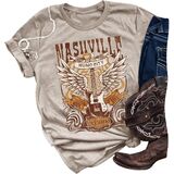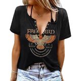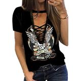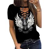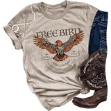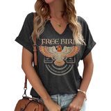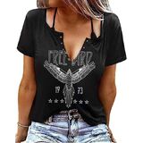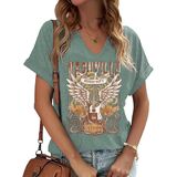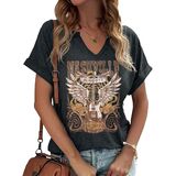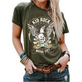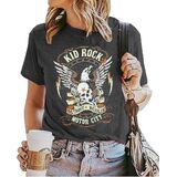 Vintage Rock Skeleton Eagle T Shirts for Women Casual Country Music Tshirts Funny Summer Rock Band Concert Shirt Top