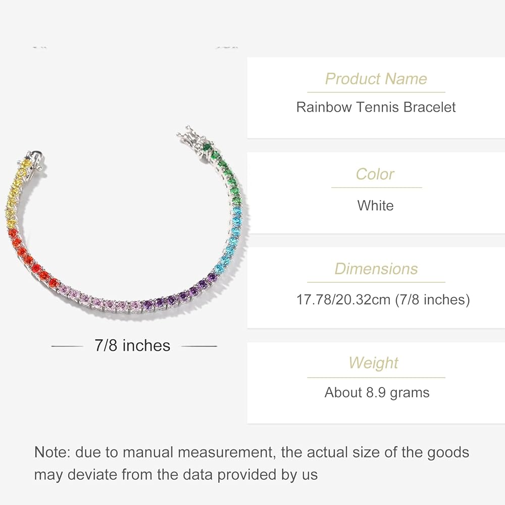 Colorful Rainbow Tennis Bracelet,Sparkling 14K Gold Jewelry for Women, Effortlessly Stylish and Trendy Bracelet,Exquisite Gift for Mom or Anyone Who Loves a Pop of Color