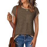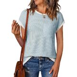 DESIGN: This casual tops adopts a fitted version, a loose silhouette, a short sleeve crew neckline, a textured ribbed knit fabric, basic simple solid color with t-shirt edge color blocking design more fashionable