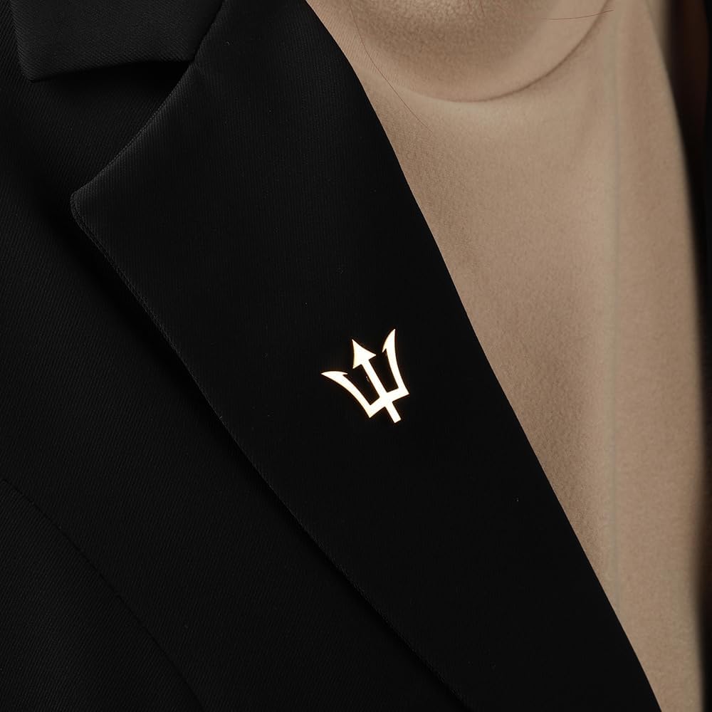 Gold Plating Trident Stainless Steel Brooch for Men Shirt Badge Lapel Pins Clips
