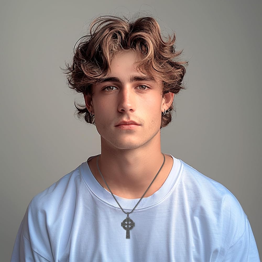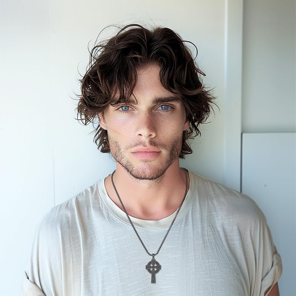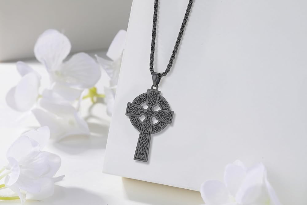 Celtic Cross Necklace: Cross necklace for men using 925 sterling silver material, gold plated, hypoallergenic, anti-rust, nickel-free, lead-free, cadmium-free, not contain any allergic elements,100% safe for sensitive skin. Ideal cross jewelry for men women of all ages