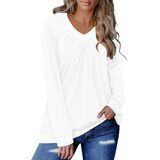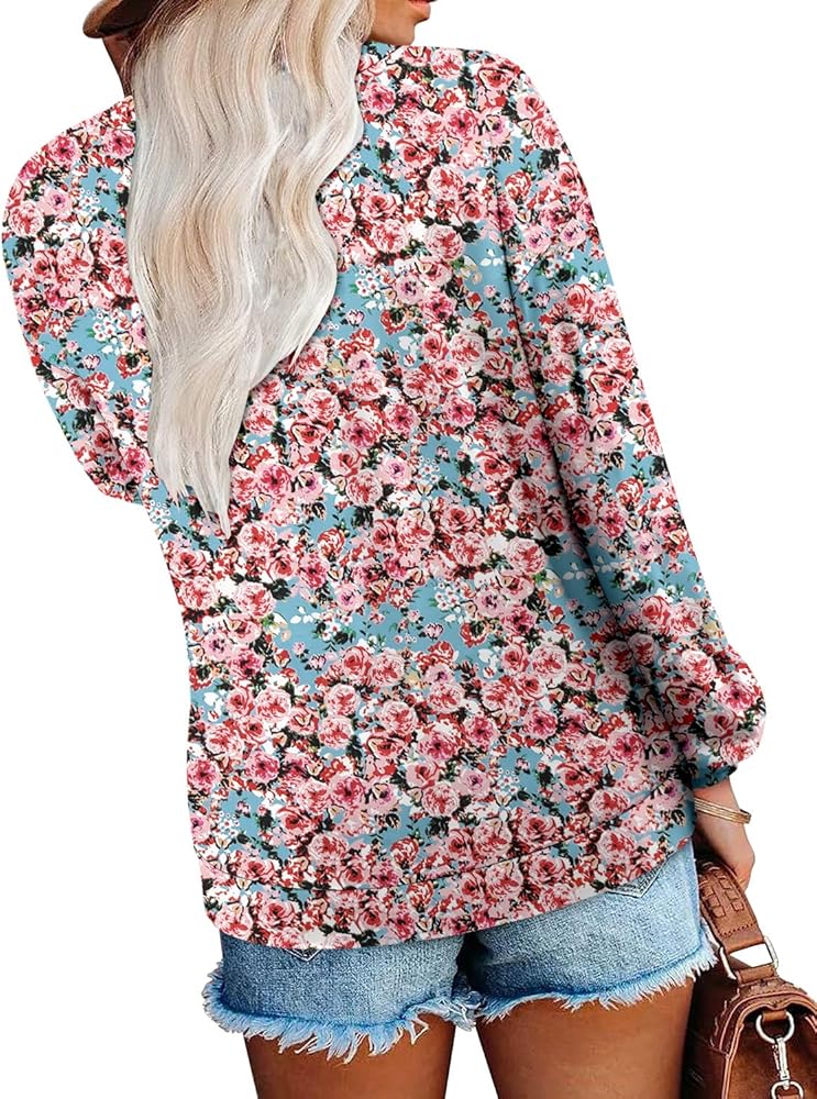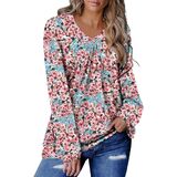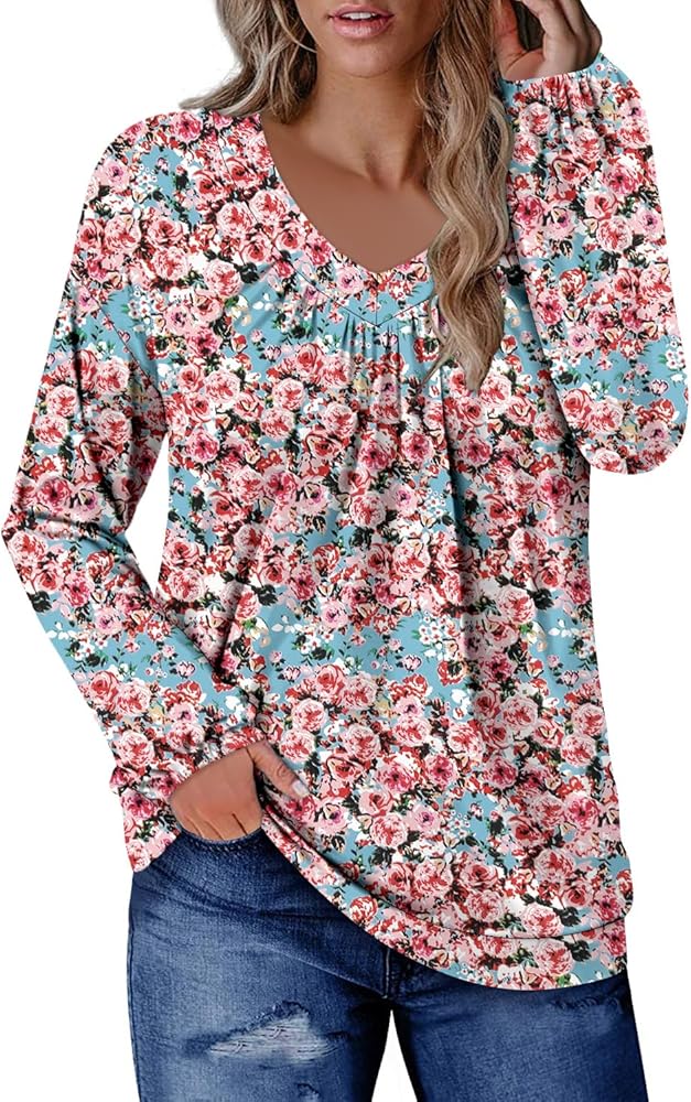 Features: Long Sleeve Tops for Women V Neck with Pleated Design,Solid Color and Floral Print, Cute and Comfortable