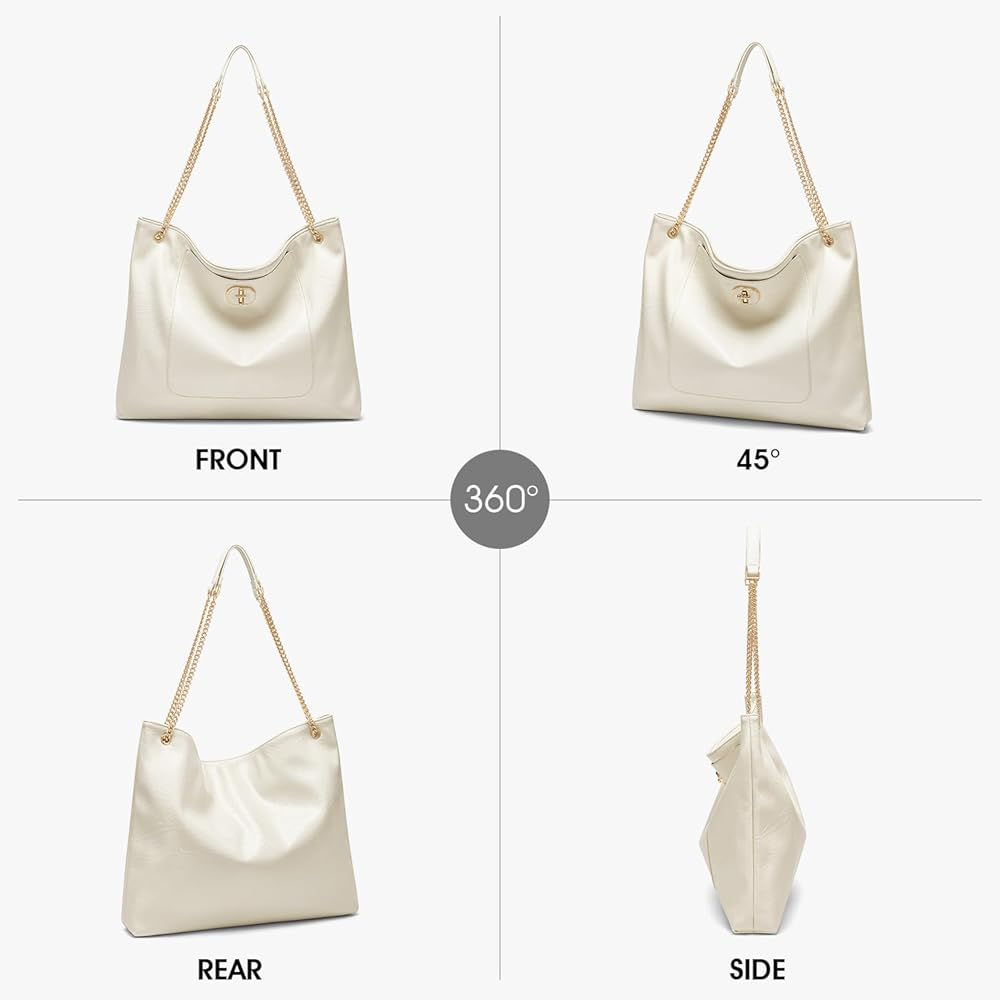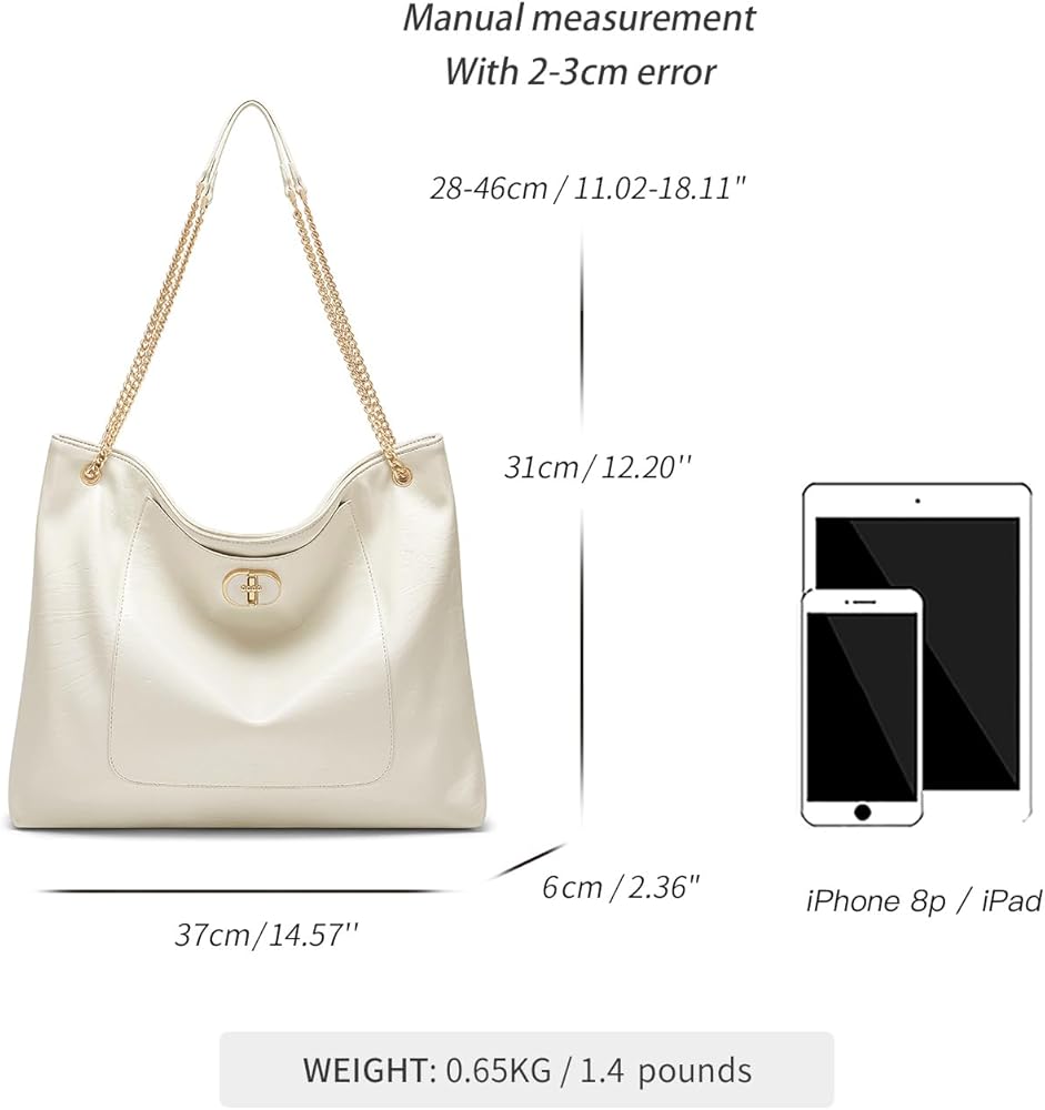 MATERIAL: This women's tote bag is made of high quality eco-friendly Vegan Leather and polyester lining with durable gold hardware. Anti-scratch and tear-resistant, which is fashionable and elegant.