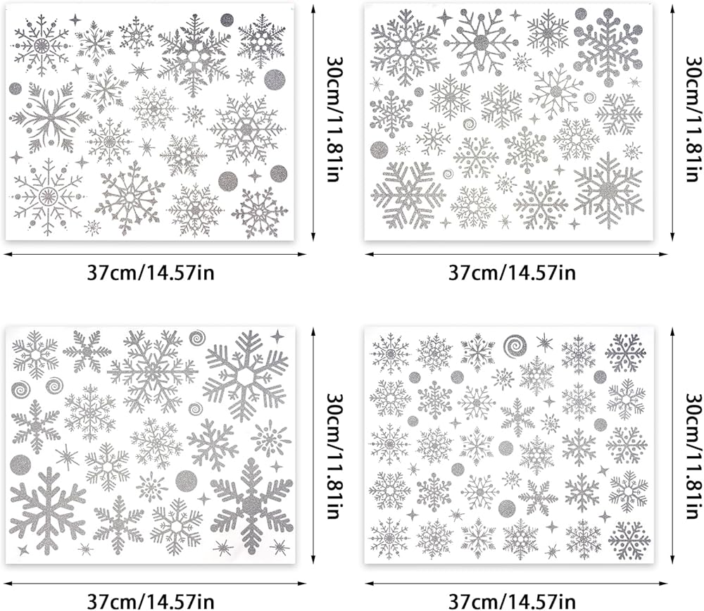 • Dazzling Design: Our 4 Sheet Christmas Snowflake Window Clings feature 147 pieces of silver glitter snowflakes. Use these various snowflake decals to decorate your window, creating a festive and enchanting winter wonderland atmosphere for your Christmas holiday party