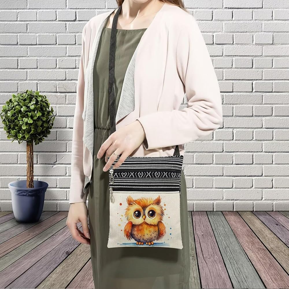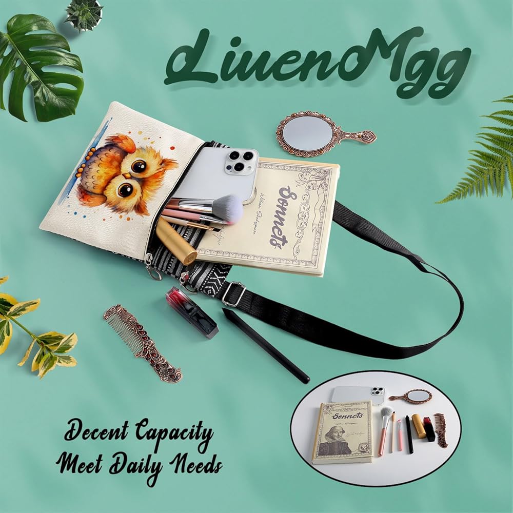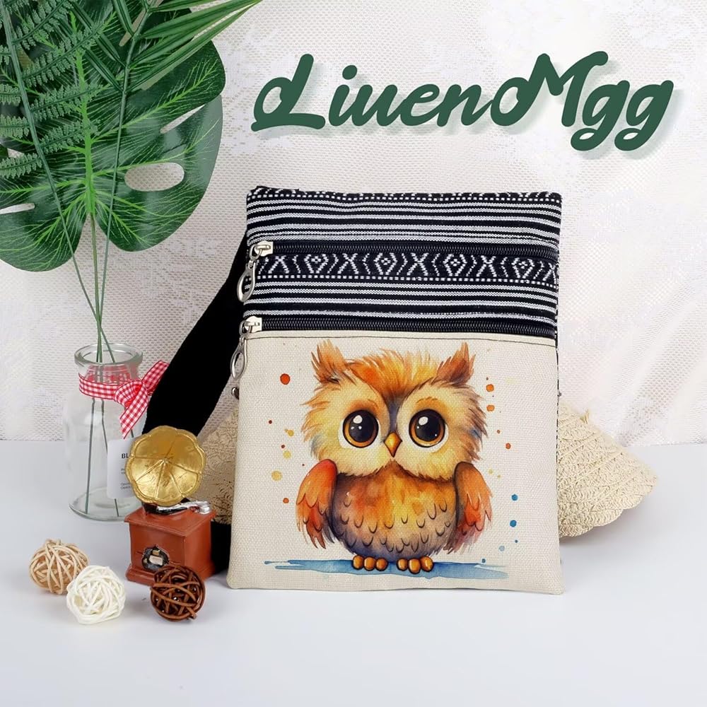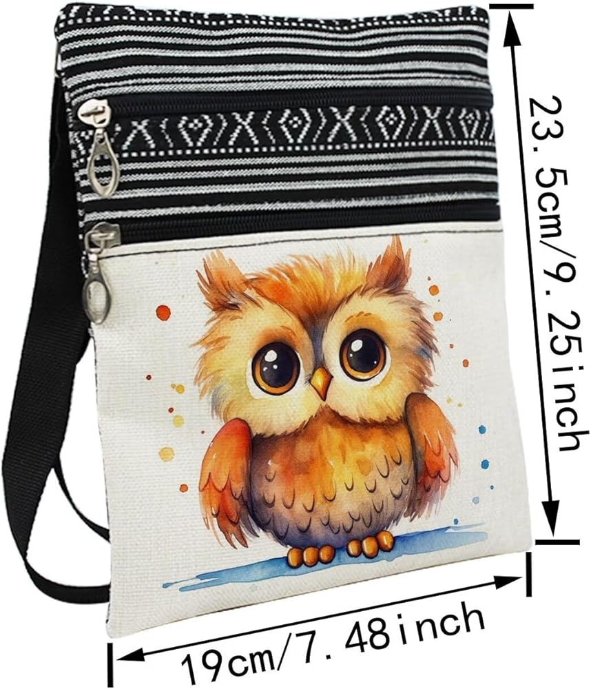 LiuenMgg Lovely Owl Small Multi-functional Crossbody Bag for Women. Our crossbody bag is made of durable and lightweight polyester fiber. The bag has a main zipper pocket and an additional small zipper pocket in front. The zippers of the bag are of high quality, and the shoulder strap is adjustable, with a minimum length of 30 CM (11.8 in) and a maximum length of 60 CM (23.6 in). The size of the bag is 23.5 CM (9.25 in) * 19 CM (7.48 in) * 1 CM (0.4 in) . It can perfectly hold your little personal stuffs like cellphones, air pods, lipsticks, cards, keys, wallets, coins, tissues, passports, etc. The patterns on the bags are colorful and vivid. Carrying this bag may makes you look great and fashionable. When we go out, we will definitely need a portable bag to hold your personal effects. Thus our bags, combining practicability and aesthetics, are a good choice, no matter for personal use or for gift idea.