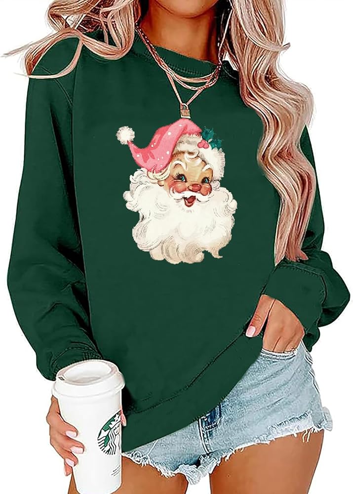 Features: Retro Santa Shirt Sweatshirt, Xmas Holiday Pullovers, Santa Merry Christmas Lightweight Sweatshirt, Xmas Holiday Blouse, Great Gift for Mom, Grandma, Aunt or Wife.