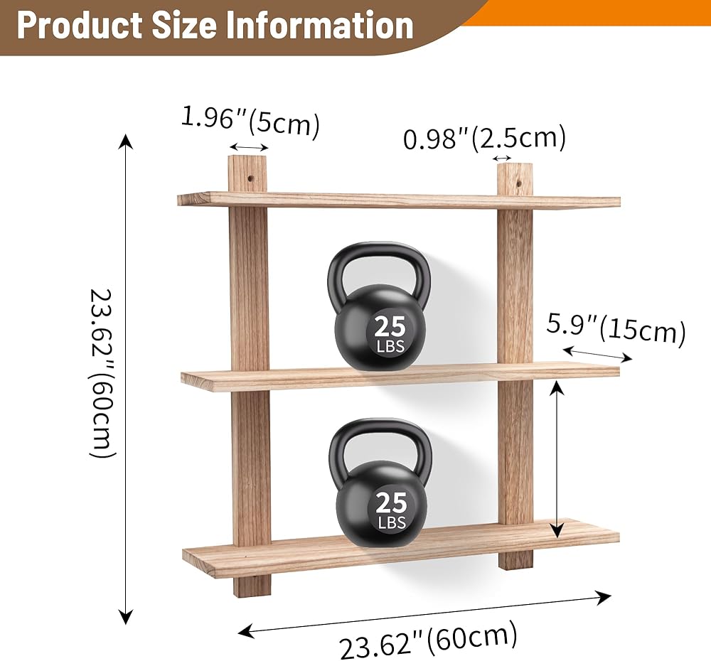 Reliable Material: Each wall hanging shelf is made of solid wood with double assembly reinforcement,ensuring both stability and durability.Each unique floating shelves can hold up to 25 lbs,offering long-lasting use after proper installation