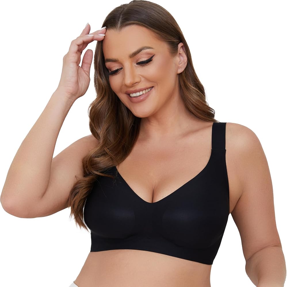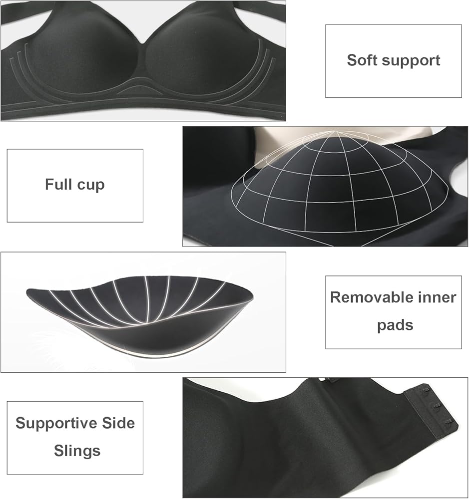 【Lightly Padded Comfort Bras】The light contour cups of this womens bras comfortable provide a natural shape, delivering light support and full coverage for you. Our wirefree bra is so elastic that will accommodate your unique shape. Seamless design makes this bra for women no underwire invisible under your clothing, perfect under t-shirts.