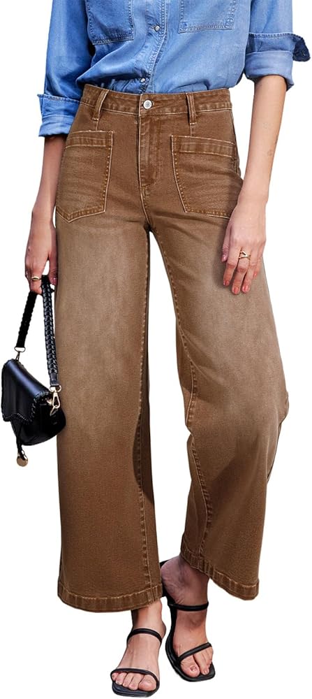 Flattering Style: These women's wide leg jeans feature a convenient button and zipper closure, two stylish slanted pockets with distressed detailing at the front, two practical large pockets at the back, and an ankle length for more versatility, making them the perfect combination of style and function