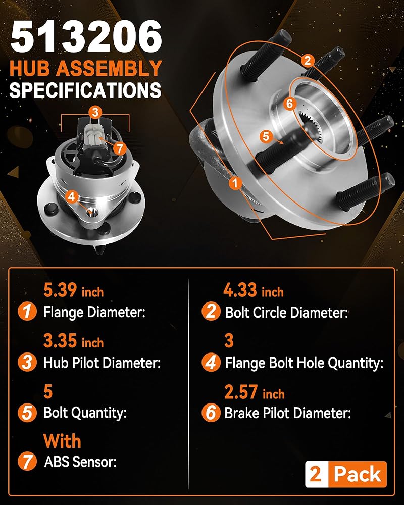 【Product Details】Flange diameter:137mm; Bolt circle diameter:110mm; Wheel hub guide diameter:85mm; Number of flange bolt holes:3; Number of bolts:5; Brake pilot diameter:65.4mm; ABS sensor:Yes