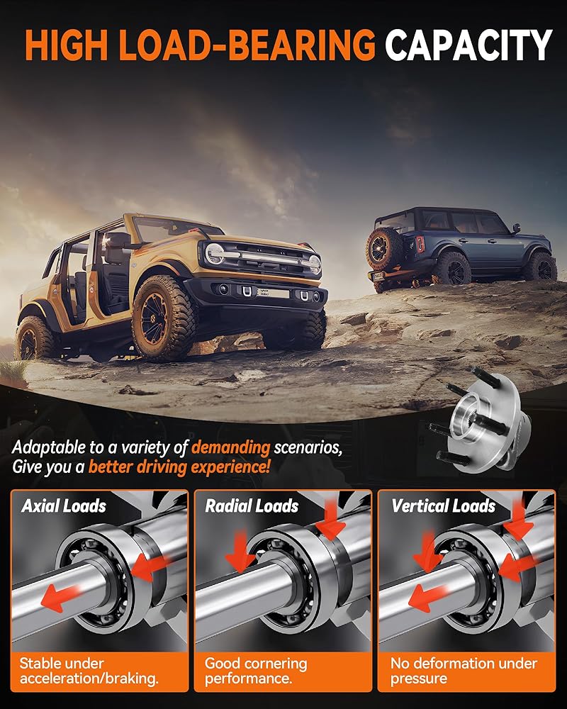 【 Product Upgrade】 The wheel hub bearings are well sealed, compact in structure, and have high load-bearing capacity; Reduced bearing shaking, low noise, and improved driving comfort; Bearings have higher reliability and longer service life.
