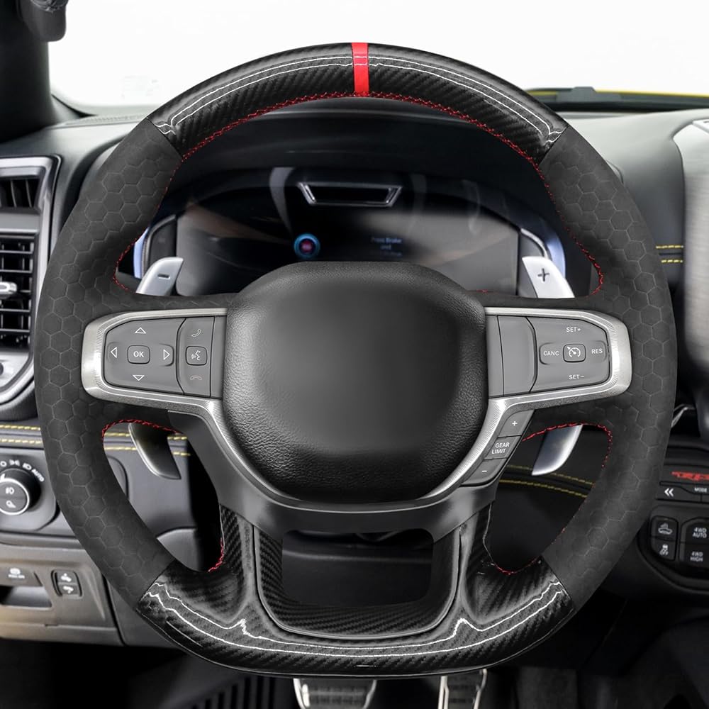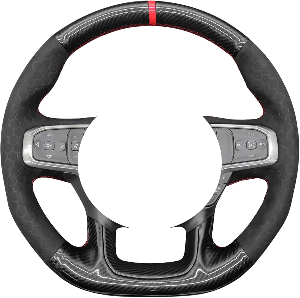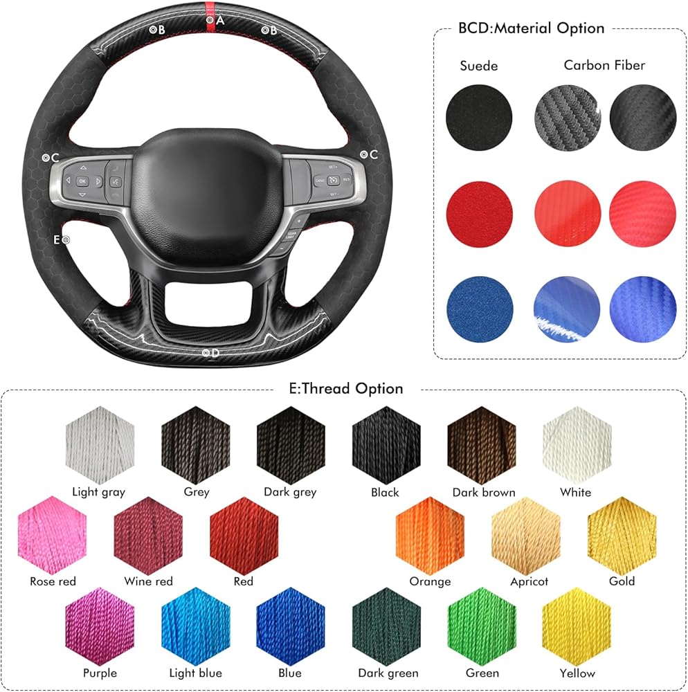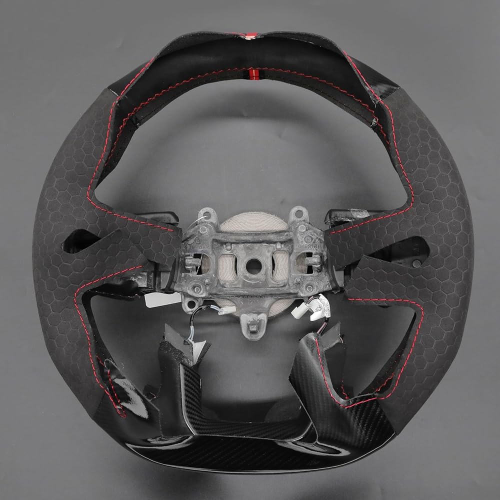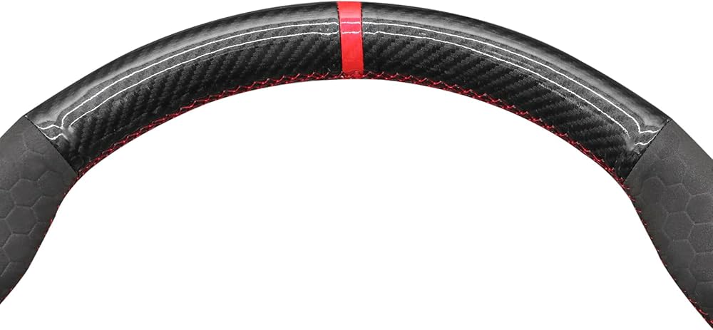 Customization: Default style: Black glossy carbon fiber + hive embossed suede + red stripe + red thread; Mewant customized cover 100% perfectly fit your steering wheel, precise fit just like the OEM