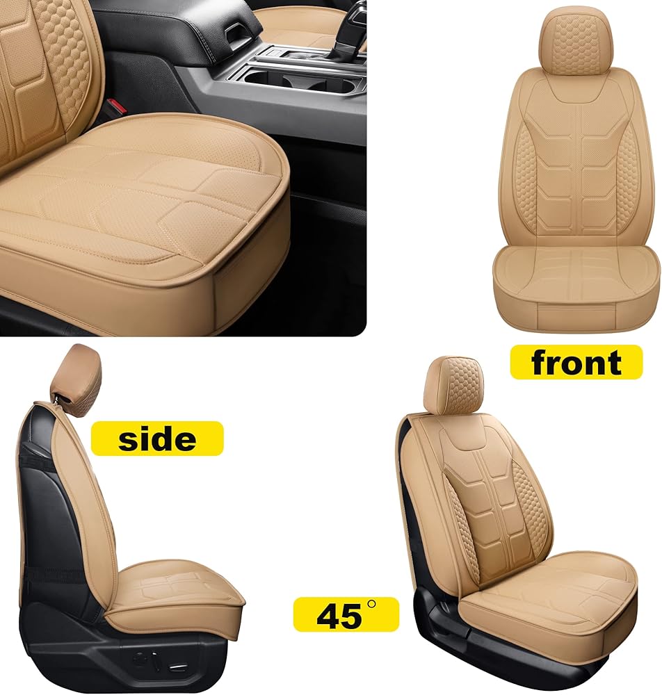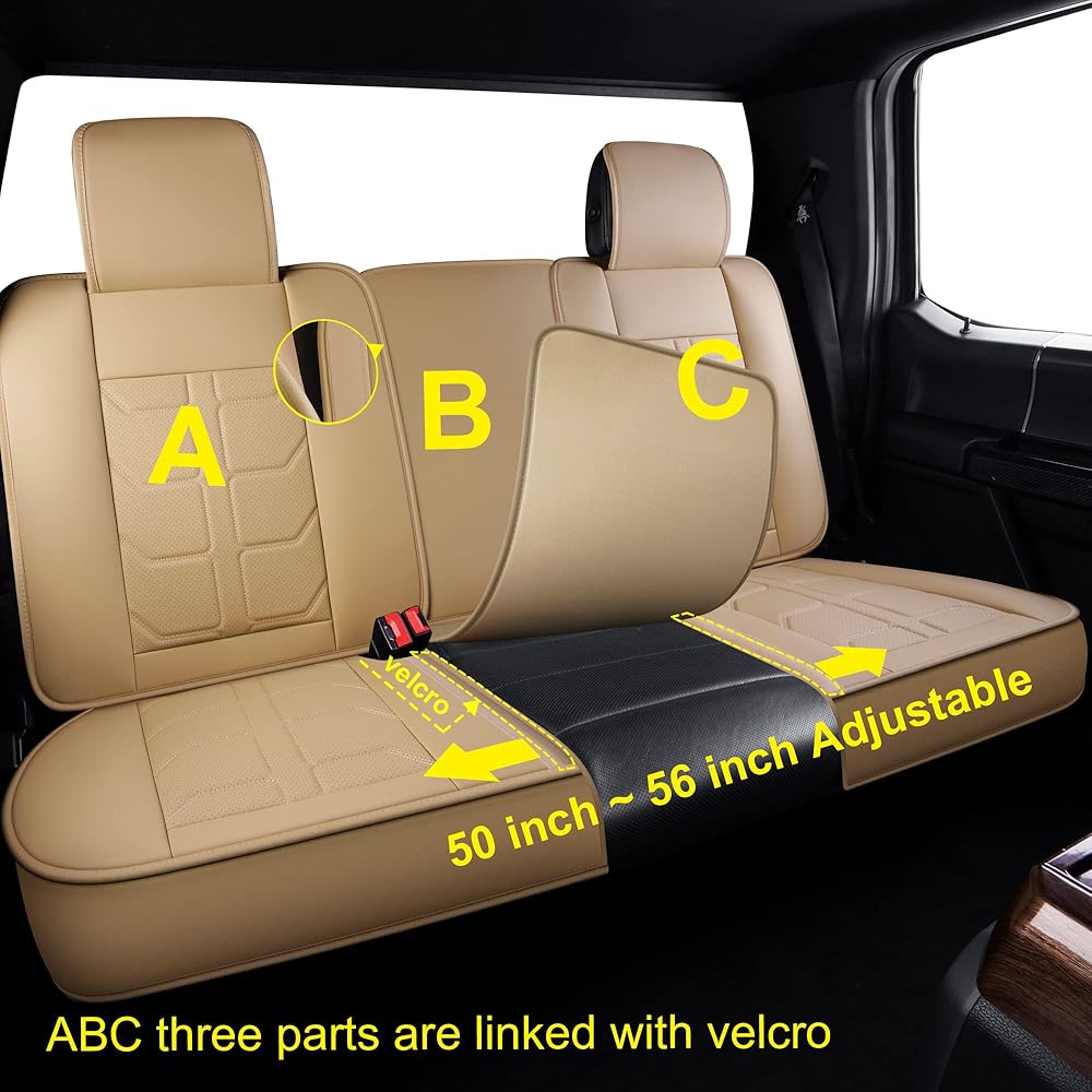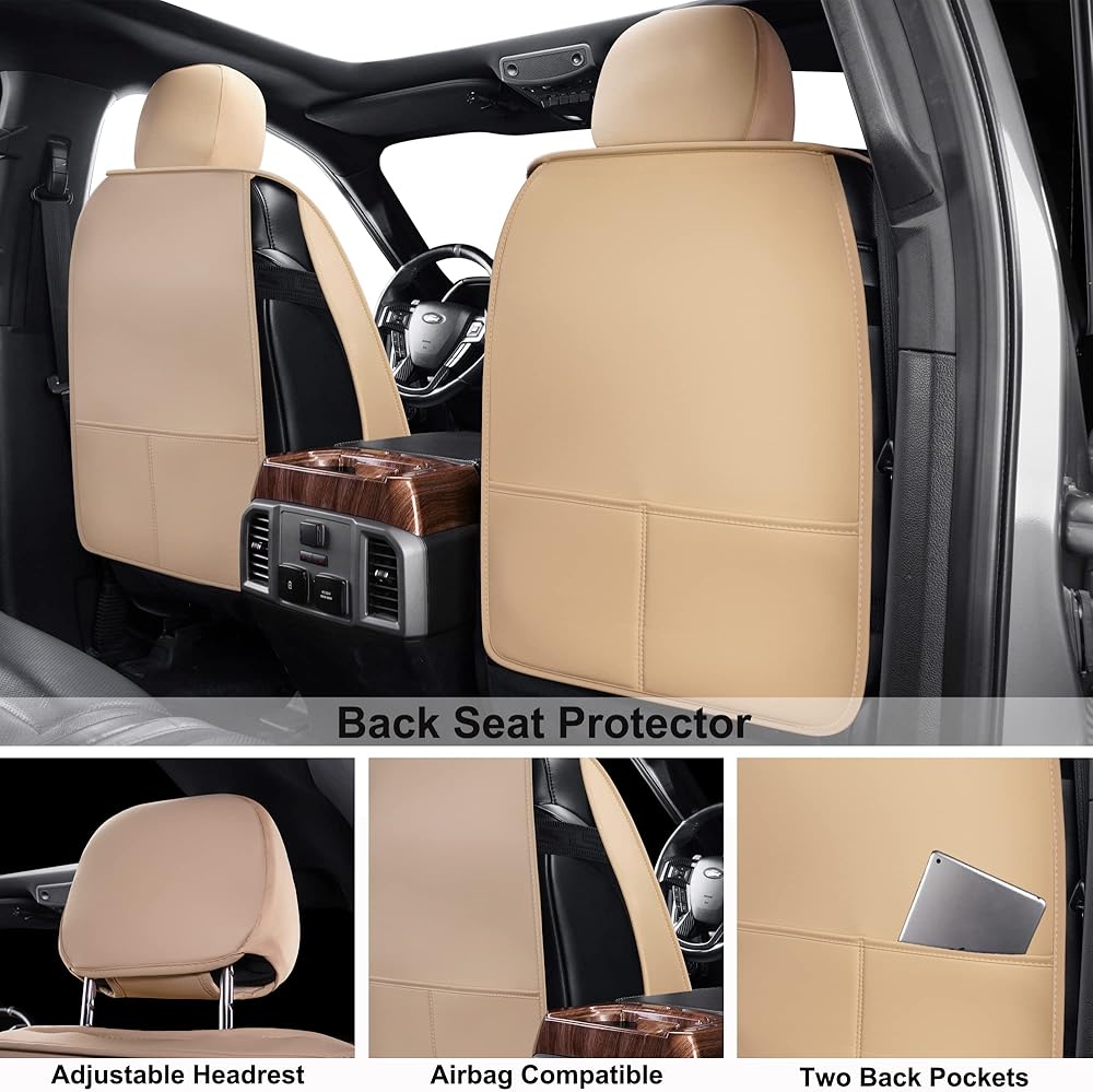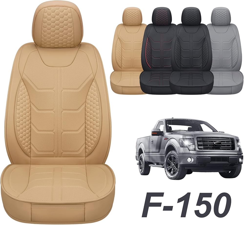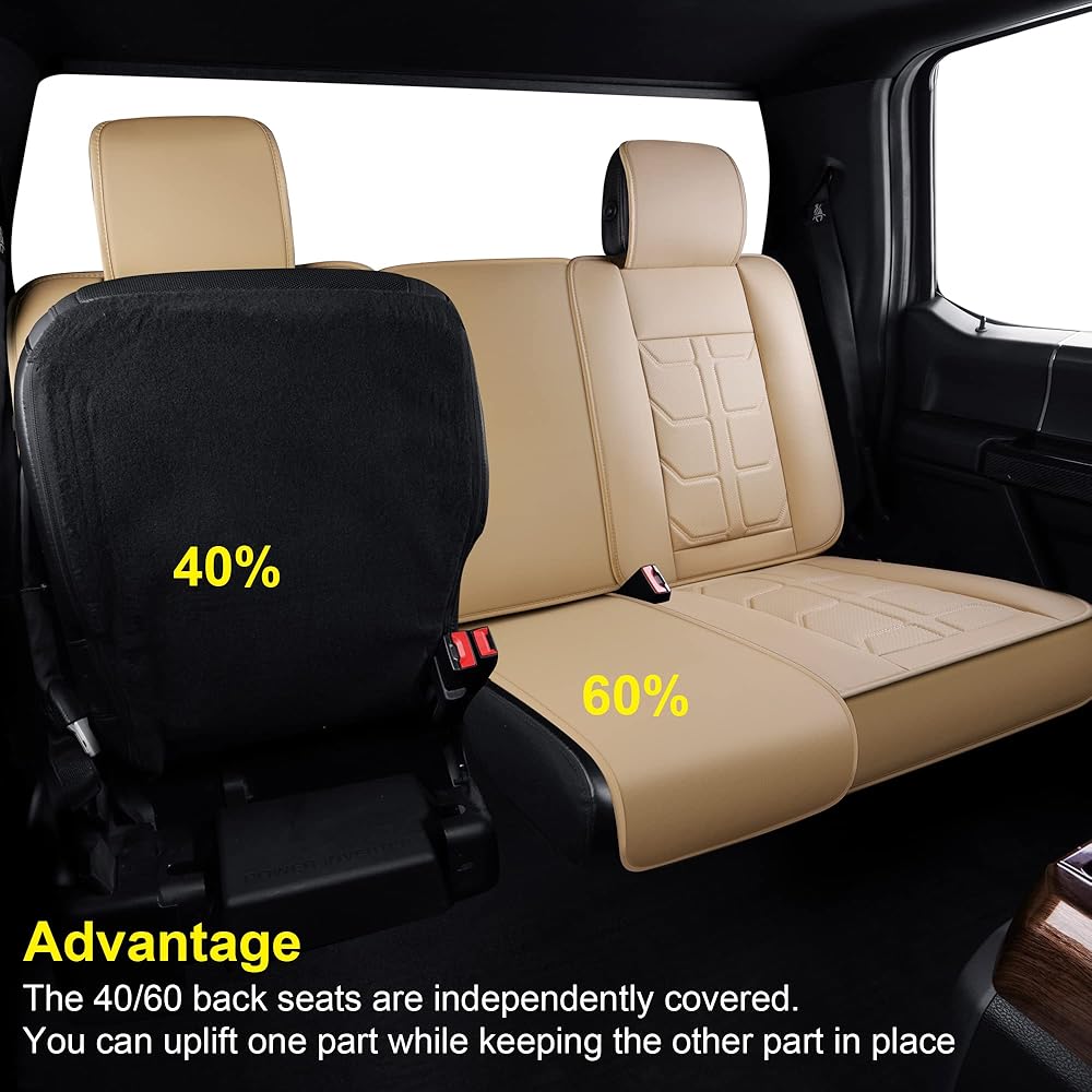 GXT Car Seat Cover Full Set with Waterproof Leather, Automotive Seat Cushion for Pickup Truck Fit for Select 2009-2022 Ford F-150 Models and 2017-2022 F250 F350 F450 Models (Beige)