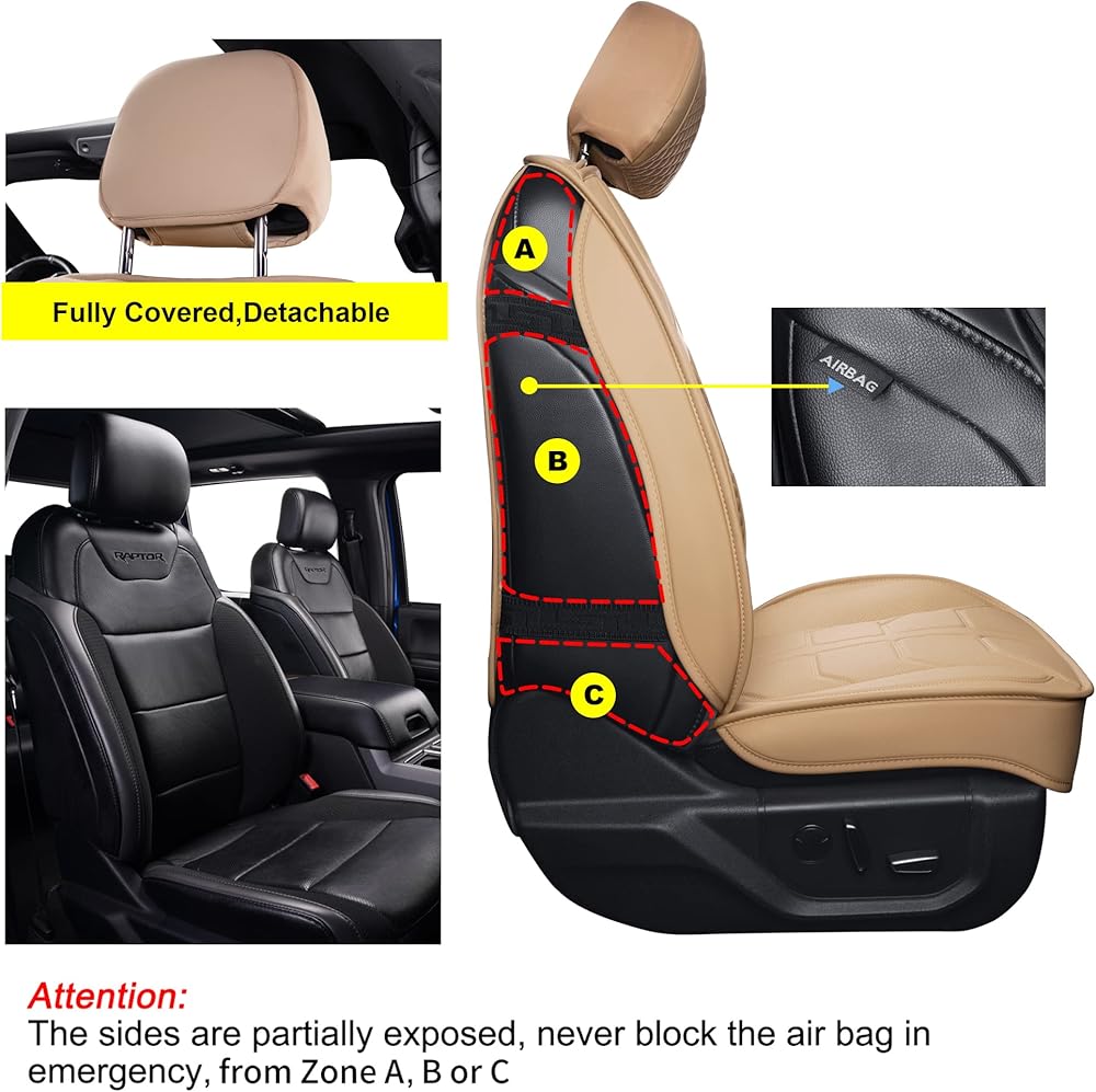 【Designed to fit F150-F450】This seat cover is customized to fit Select 2009 - 2022 Model Year Ford F150, and 2017 - 2022 Model Year Ford F250/F350/F450. The sides of the front seats are not fully covered to leave space for the air bag incase of emergency.