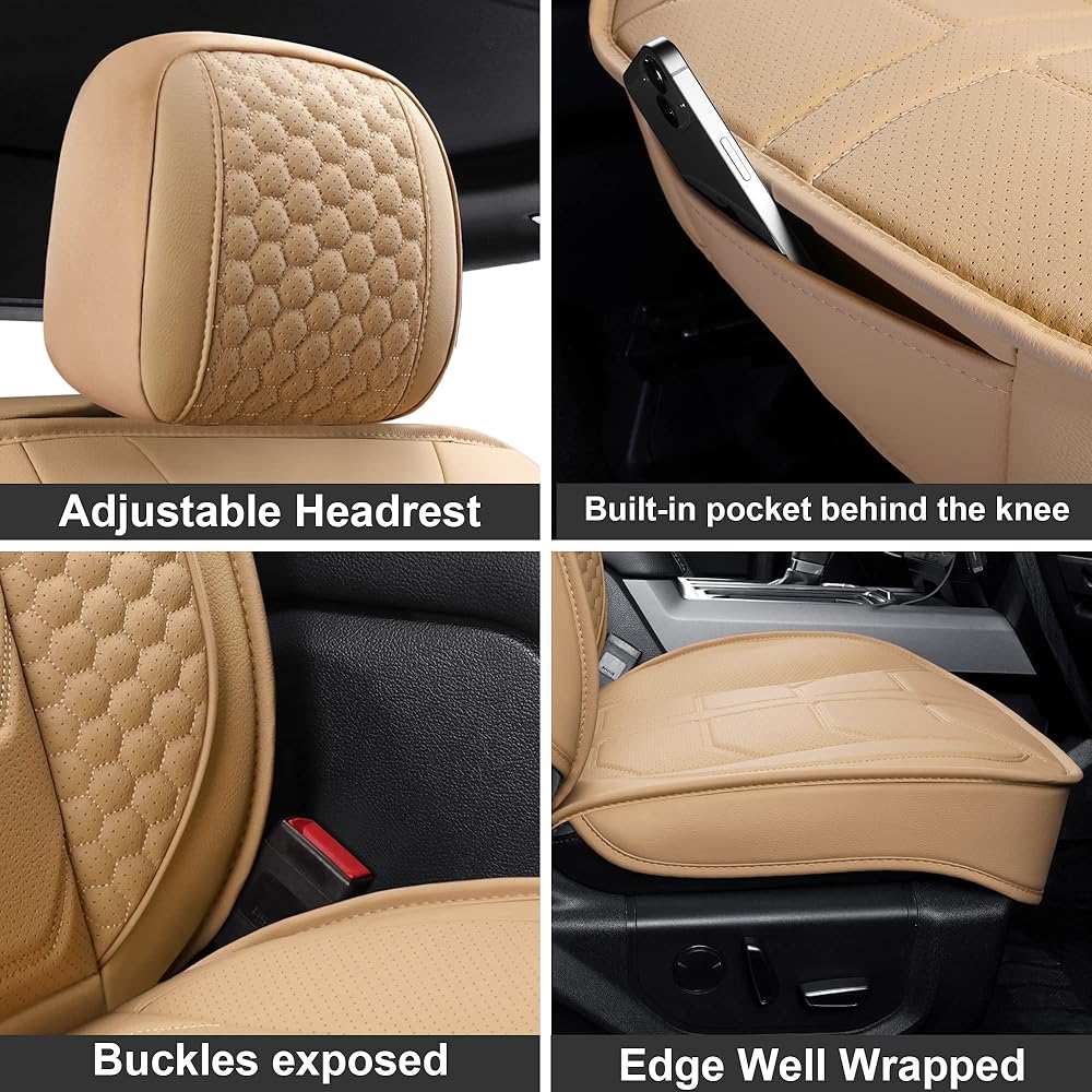 Premium Material】Made with Premium faux leather that are soft and durable. The seat covers are padded with cushion designed to make your driving comfortable and less fatigue.