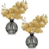 Artificial Orchids Flowers - Our artificial orchids are stylish and elegant, there has two lifelike orchid branches, eye-catching fully bloomed flowers and buds, are displayed in a transparent glass vase perfectly , it cannot be takend out. This vase of the faux orchid plant comes in acrylic faux water that makes the whole arrangement simply stunning. These real touch fake orchids can bring green life and freshness to your living space