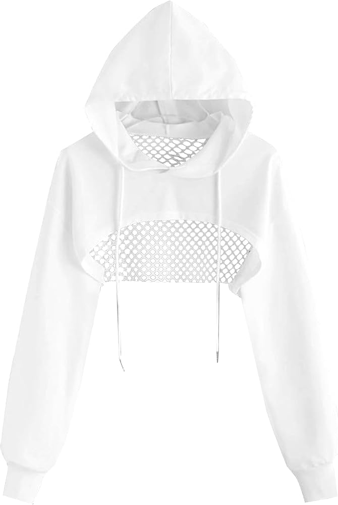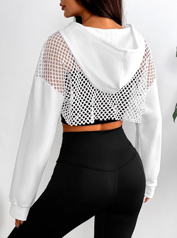 Details: Hooded sweatshirt, Fishnet, supper crop top