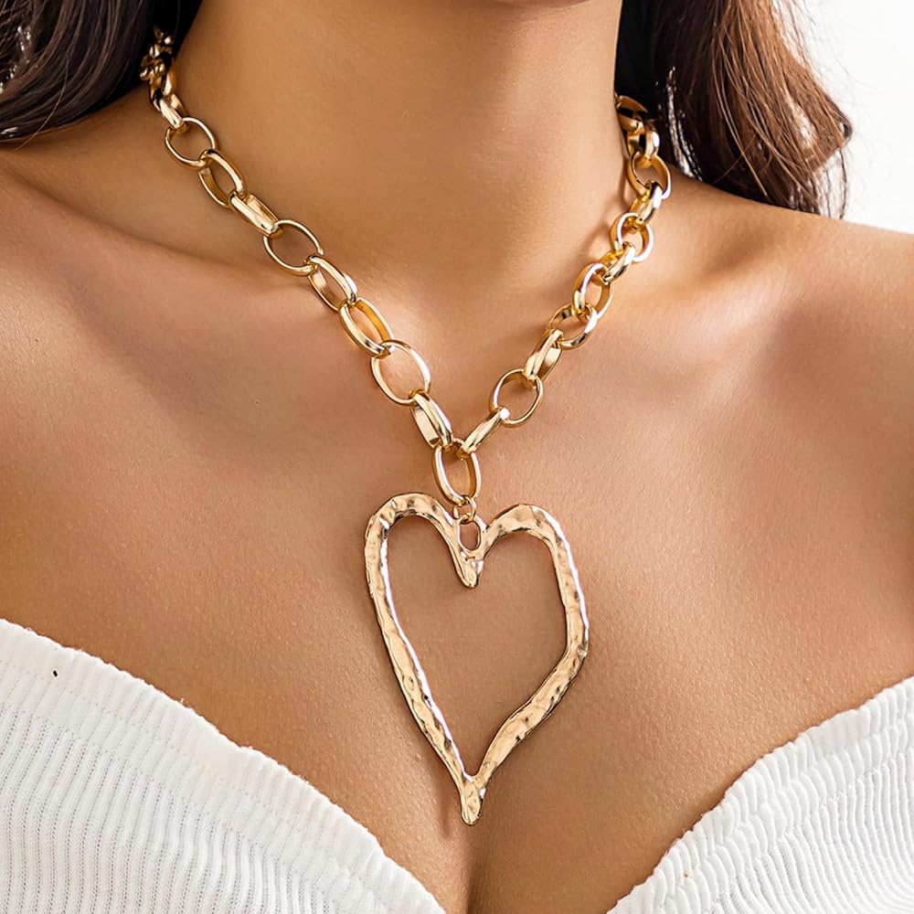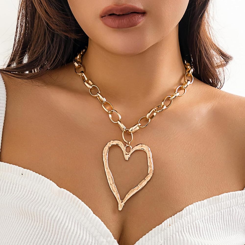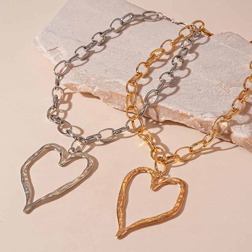 CHUNKY SILVER NECKLACE: The heart pendant necklace features a large heart design and is designed with a lobster clasp for ease of wear, suitable for most women, the exaggerated large bead design is also more comfortable to wear and is very eye-catching around the neck or on the chest, making it instantly noticeable.