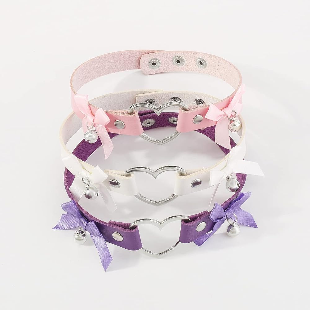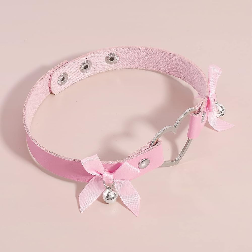 Unique Design: This punk style choker necklace with adjustable buttons, can be adjusted to three different lengths, suitable for most people's neck circumference. Use PU leather, durable and not easy to deformation. There are also hollowed out hearts, cute bows and bells as decorative embellishments, giving it a sweet and cool style. It highlights your distinctive personality, it will popular with women
