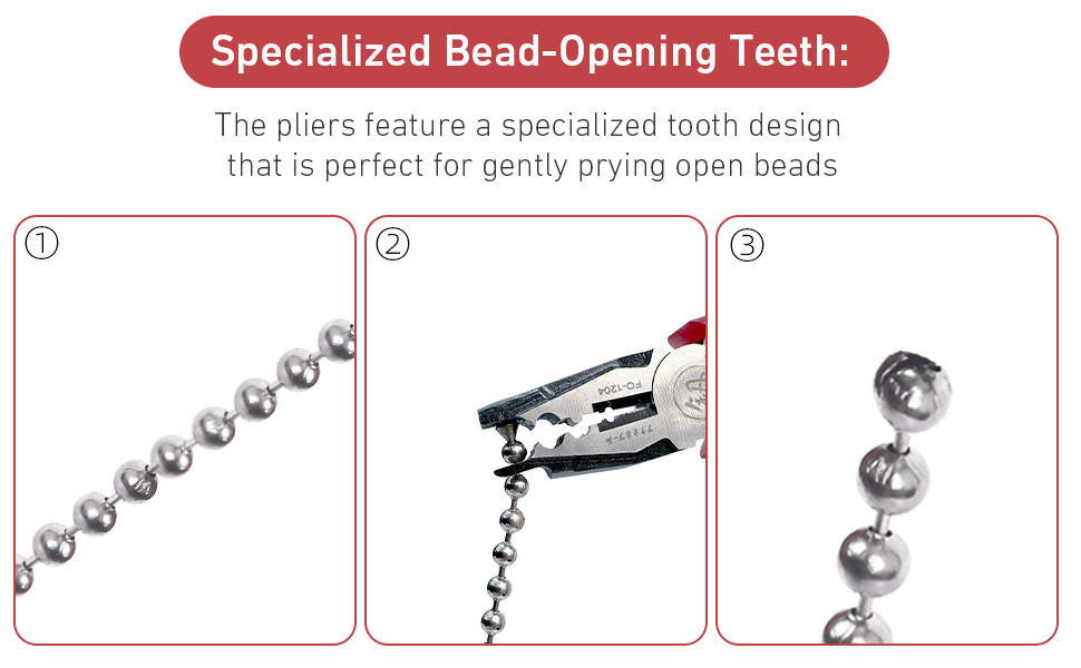 【Hardened Cutting Edges for Easy Cutting】The pliers come with hardened cutting edges that make cutting through metal chains and bead chains smooth and effortless, offering precision and efficiency for both professionals and DIYers.