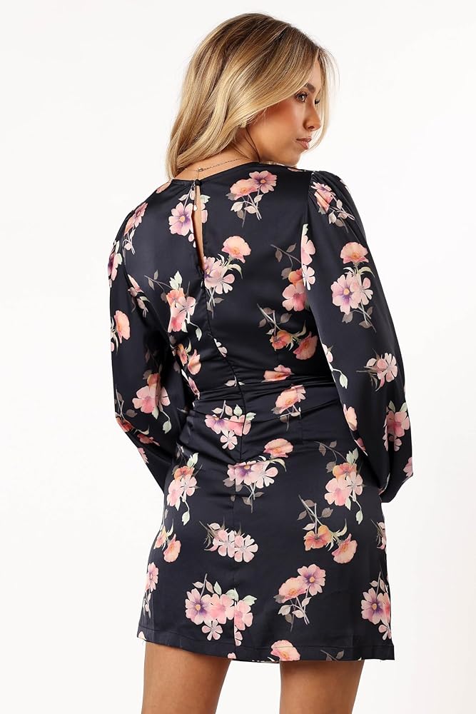 This is the perfect party dress for any occasion! The mini length and high round neckline look oh-so-chic, while the long sleeves with elasticised cuff keep you comfortable. The satin sheen finish gives this dress that luxurious feel, so you'll be sure to sparkle and shine at your next party event!