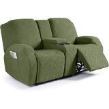 EASY TO INSTALL: Stretchy 2 Seater recliner slipcovers with console include 2 pieces cover with armrests, 2 pieces console cover. The 4-piece design is easy to install, no need to plug excess fabric with foam sticks, which saves installation time. In addition, our recliner slipcovers have utility pockets on both sides where you can put remotes, phones, magazines, and other items. Make your sofa more tidy and more convenient to store
