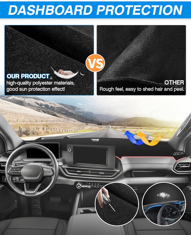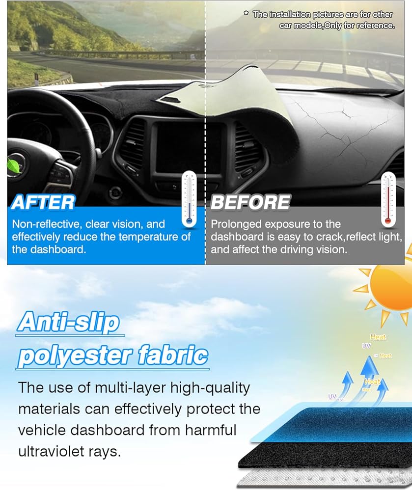 【Dashboard Protection】A great way to protect your vehicle's dashboard from harmful UV rays which may cause the dashboard to crack and fade. It also can prevent dirt and dust from falling on the dashboard and block scratches. It is an ideal choice in extreme weather areas to keep the dash cooler in the summer and warmer in the winter.