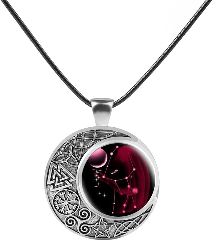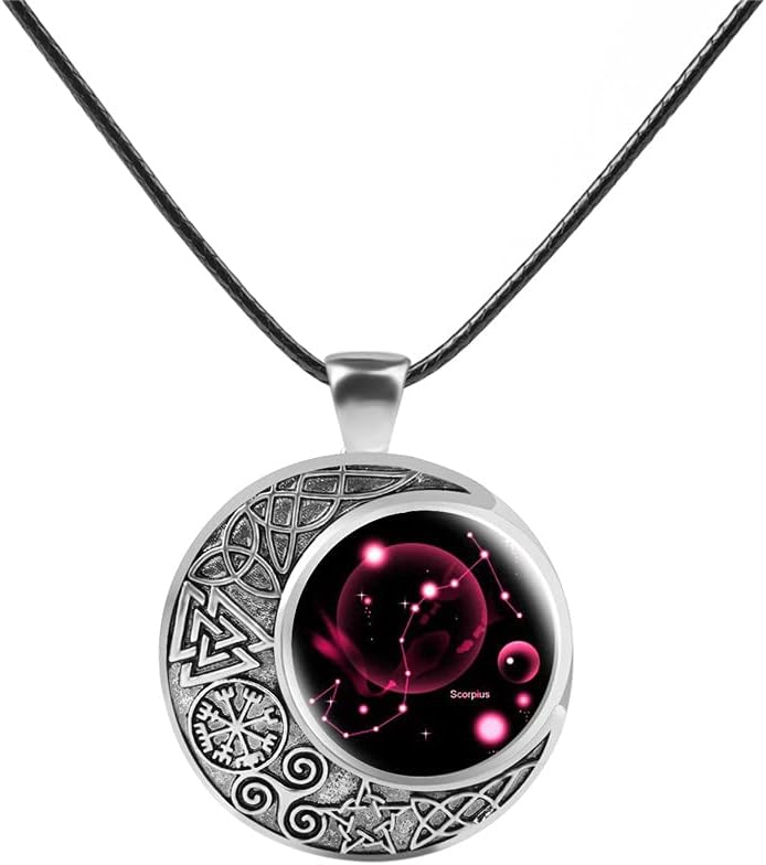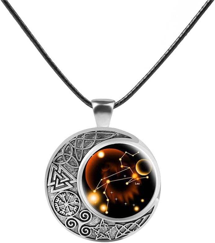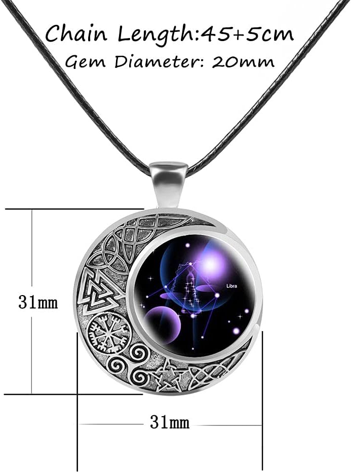 Viking moon crescent necklace with twelve constellation zodiac time gem necklace, astrology horoscope leather necklace, unique shape, to the unique you, infinite charm and personality. Best blessing and protection! Constellation is the best choice for birthday gifts.full of charm. The dainty design will make you stand out.It's perfect necklace for every day. For your " Pretty Happiness " Fashion style,Easy match any Dress .It's for occasions like Party,Fashion Show,Photo,Wedding,Bridal,Prom.and so on.Suitable for wedding / engagement / prom / dinner party / birthday party / daily life,any occasion you want to be more charming.It can as a gift for a variety of festivals, such as Valentine's Day, Christmas, Wedding Anniversary, Mother's Day, Thanksgiving Day and Even Birthday.Idea : For your girlfriend / fiancee / wife / mother / friend .