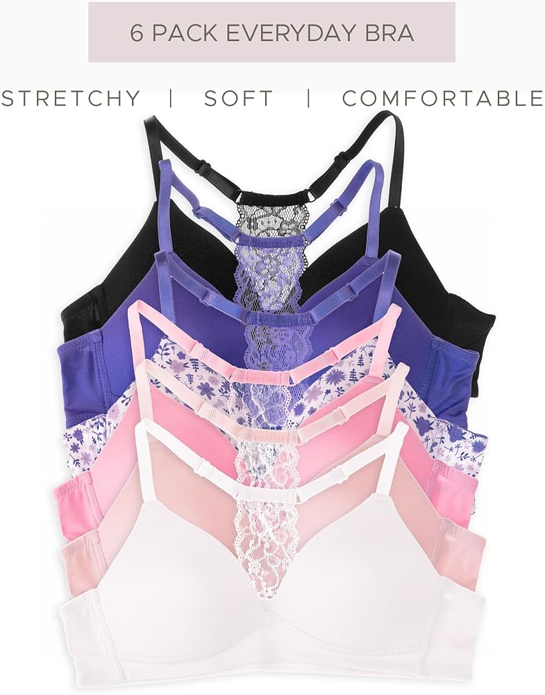 ASSORTED MULTIPACKS: EXTRA DURABLE DESIGN & FADE-PROOF COLORS: The Alyce Intimates lightly padded bras for girls come in different multipacks of assorted colors and prints to find the perfect match for your style. And the best part? You can wash them over and over again without worrying about them fraying, fading or losing their shape.