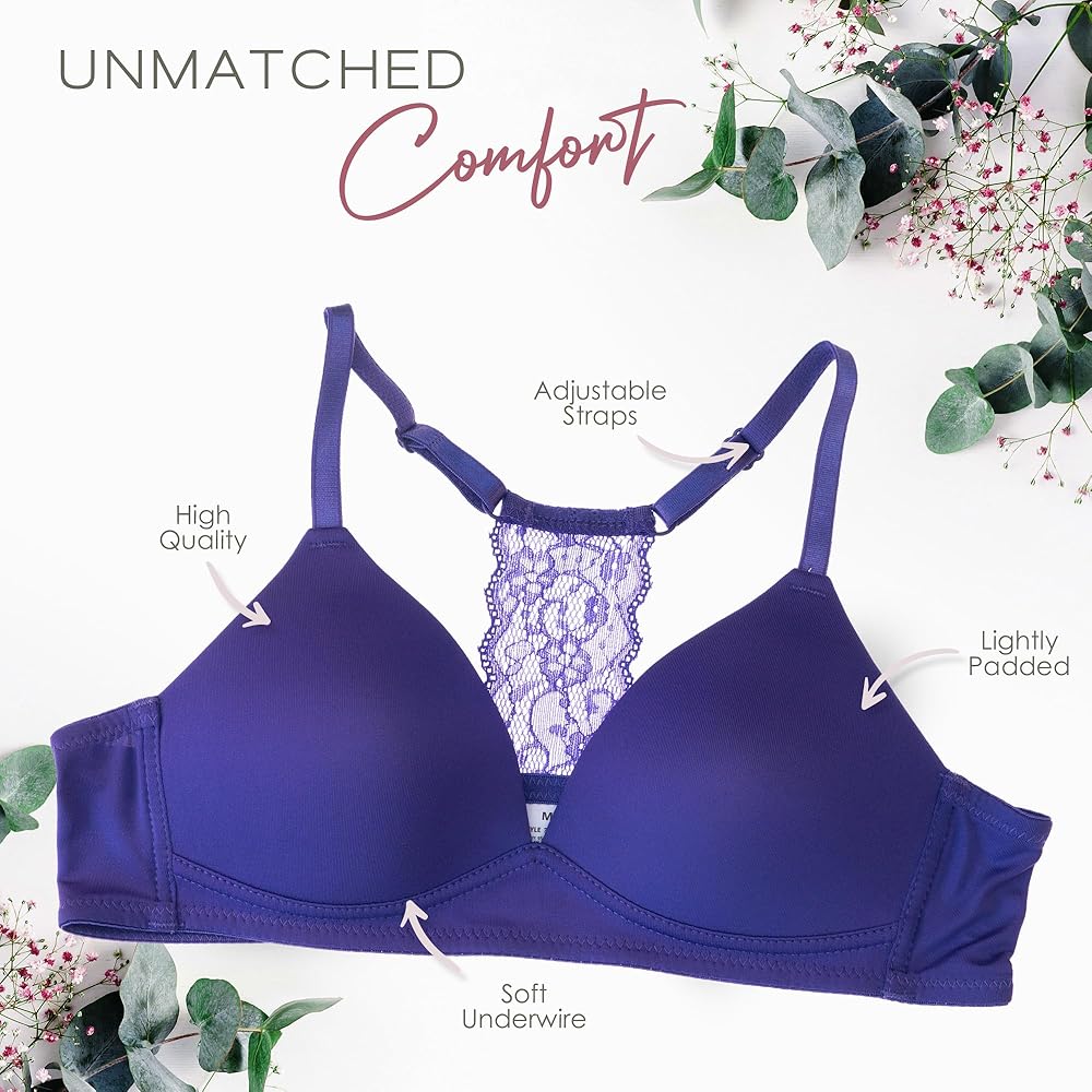 SUPER SOFT. SUPER STRETCHY. SUPER COMFORTABLE: This pack of bras for girls is made from a premium, breathable blend of 95% Polyester and 5% Spandex to provide unmatched comfort to young and petite ladies. Dreamy soft to the touch, stretchy and breathable for all-year-round wear, these t-shirt bras will become your and your girls' daily go-to choice.