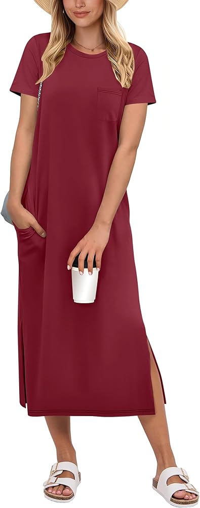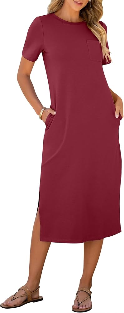 Features - Women's summer midi dresses, casual, short sleeve, crew neck, side slits detail.This women's casual summer dresses perfect for daily wear, work, office,beach,vacation.