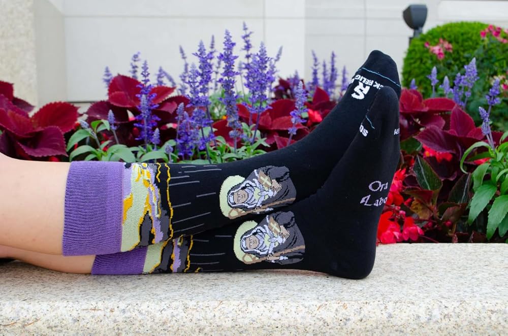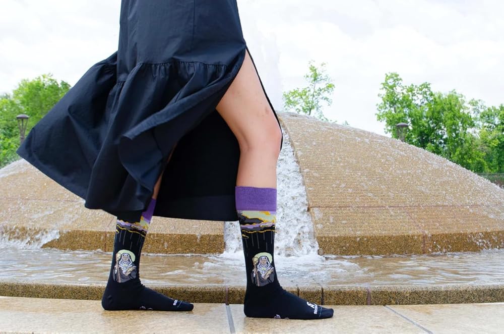 Socks are made of 75% recycled polyester and cotton blend fabric, 23% nylon, and 2% spandex; Machine wash with like colors