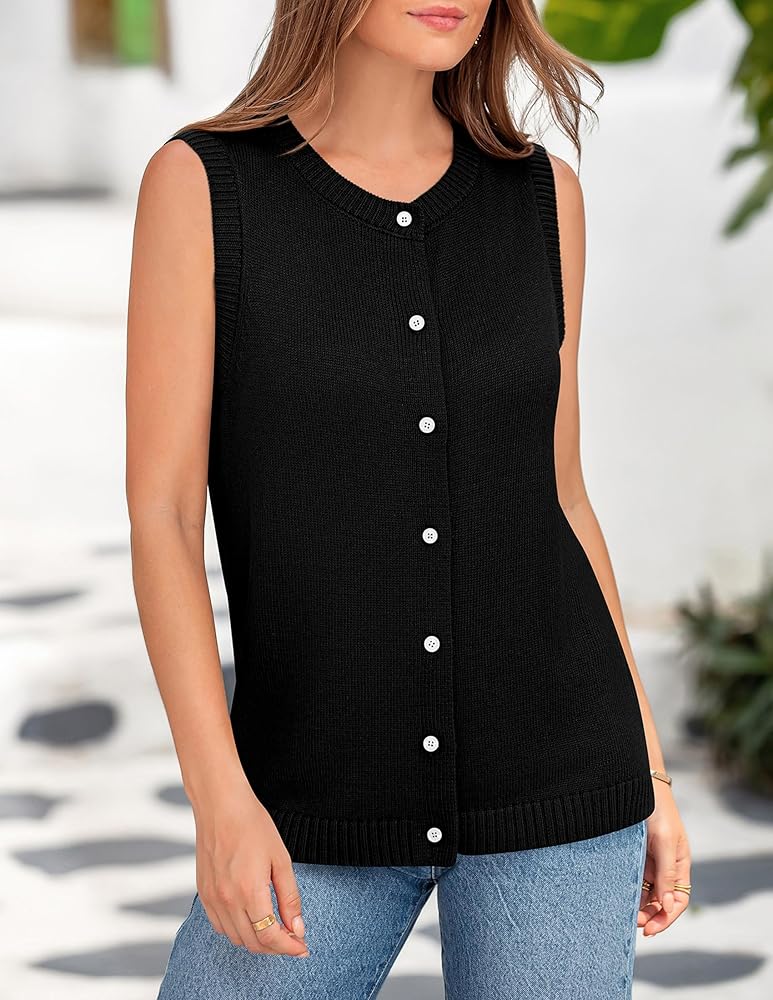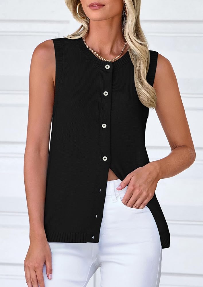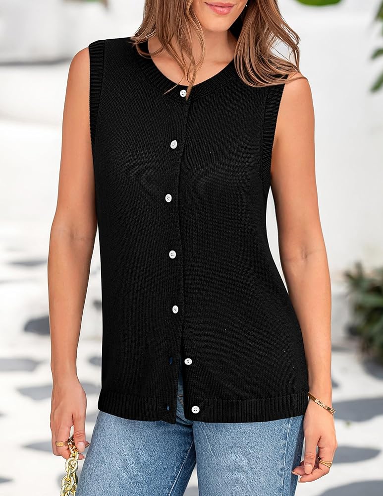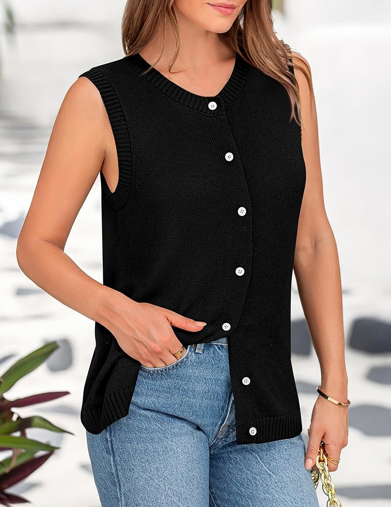 Trendy Sweater Vest Top: This Knit Sweater Top Features A Sleeveless Design with A Crew Neckline Adorned with Intricate Knit Detailing. The Button-Up Front Adds A Touch of Sophistication, While the Relaxed Silhouette Provides All-Day Comfort