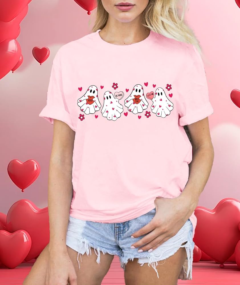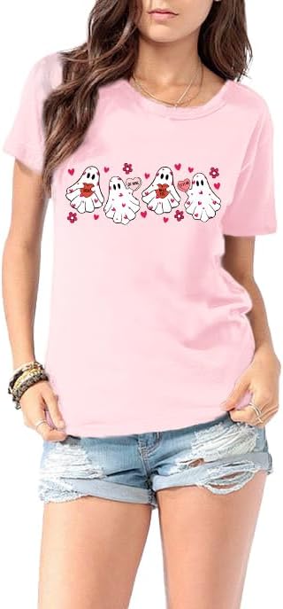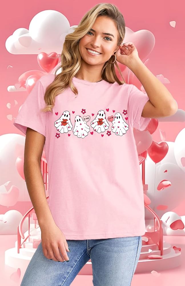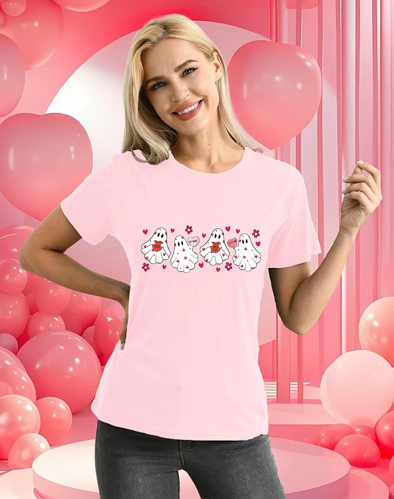 COMFORTABLE MATERIAL:This Valentines Day Ghost Shirt for women is made of 60% Polyester 35% Rayon 5% Spandex.The fabric is soft and skin-friendly, breathable.