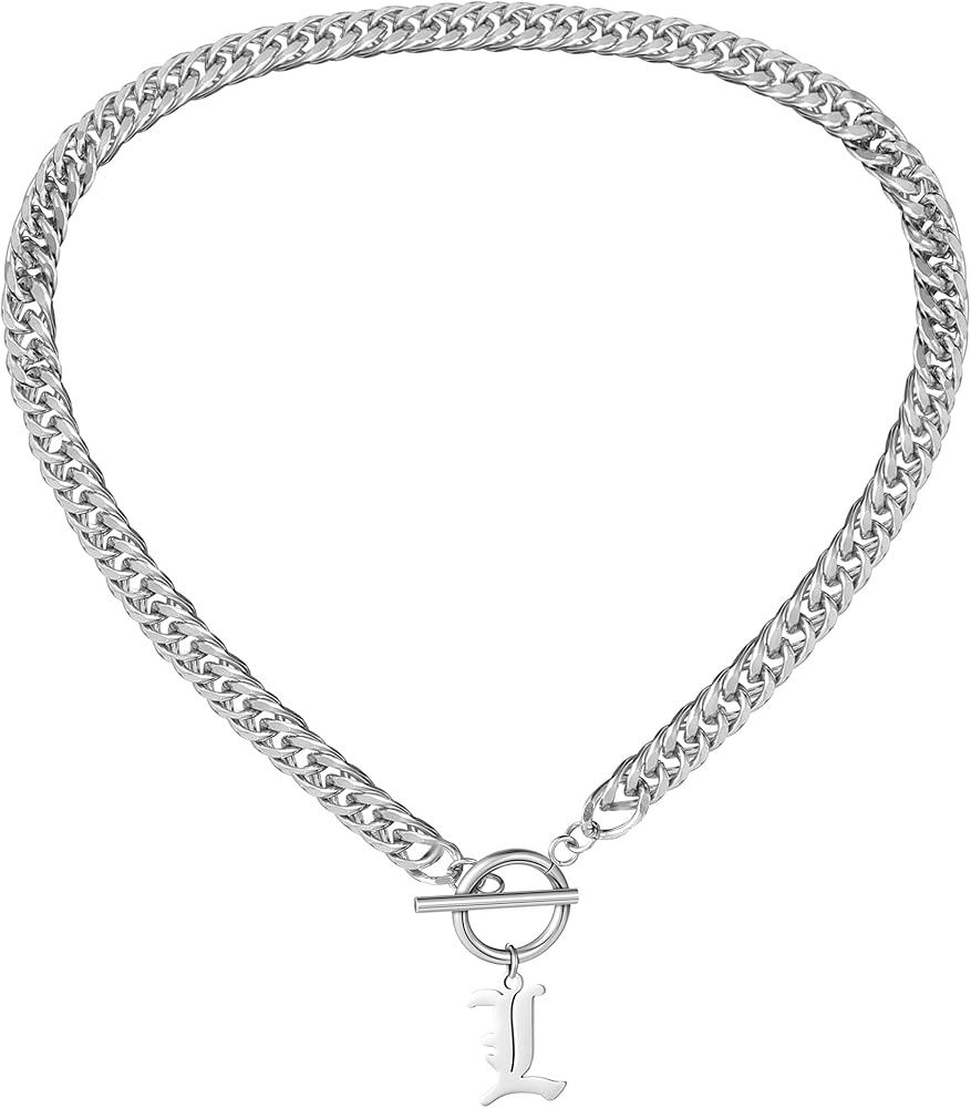 Chunky Old English Initial Choker Necklaces for Women Retro Letter Charm Curb Chain Statement Necklace for Men Unisex 15"