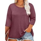 【Unique Design】:The plus size tunic tops for women are designed specifically for plus size women. Features classic crew neck, 3/4 length sleeve, plus size XL-5XL design, solid color, cute and classic. Featuring a casual loose fit that can effectively hide the meat on your stomach and will be a staple in your wardrobe.