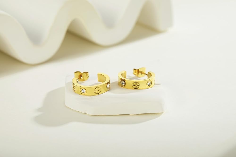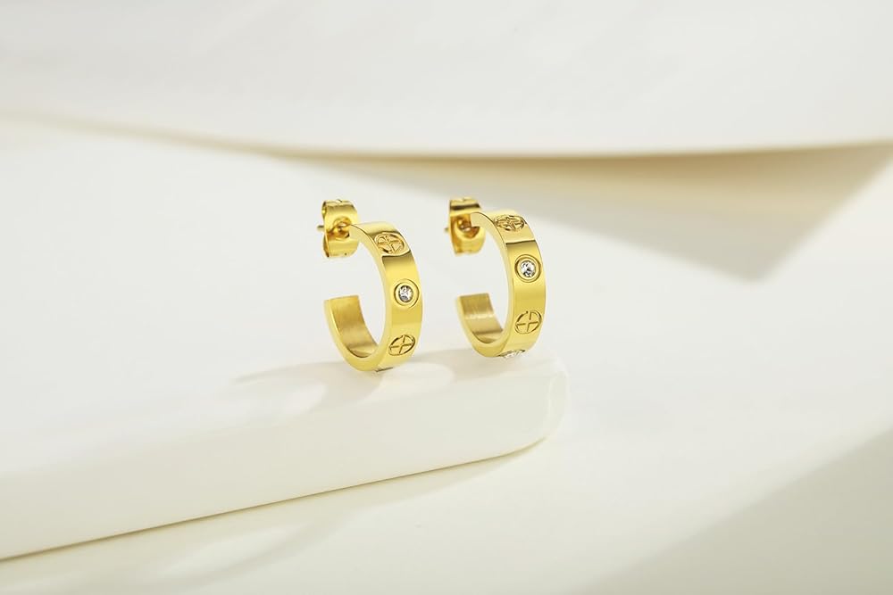 🍓 MATERIAL🍓This stunning open hoop earrings is crafted with AAAAA quality CZ and 18K Gold plated 316L Stainless Steel for a long-lasting brilliant finish and to be Hypoallergenic,Nickel and Lead-Free,will not turn your ear green.