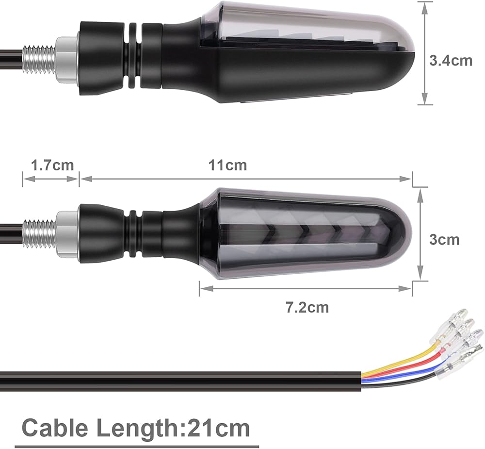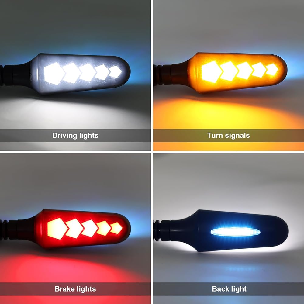1. If your motorcycle came factory with LED blinkers, the indicators just plug and play; If not, a led flasher or resistor is needed to make these work. 2. The turn signal will be used first: when the daytime running light, brake light or the taillight is turn on, the turn signal is also turned on at the same time, only the turn signal is lit at this time; when the turn signal is turned off, the daytime running light, brake light or the taillight returns to its original.