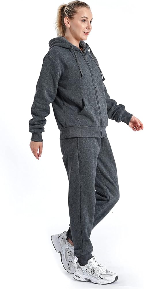 √ Fleece Sweat Suits for Women Set Include a zip up sweatshirt and a matching jogger pants,no fading of colors,no shrinkage,it wears warm and comfortable,self use or as a gift are good choice.