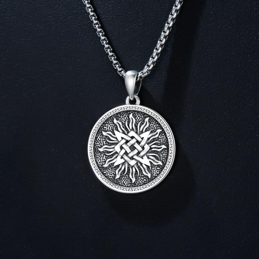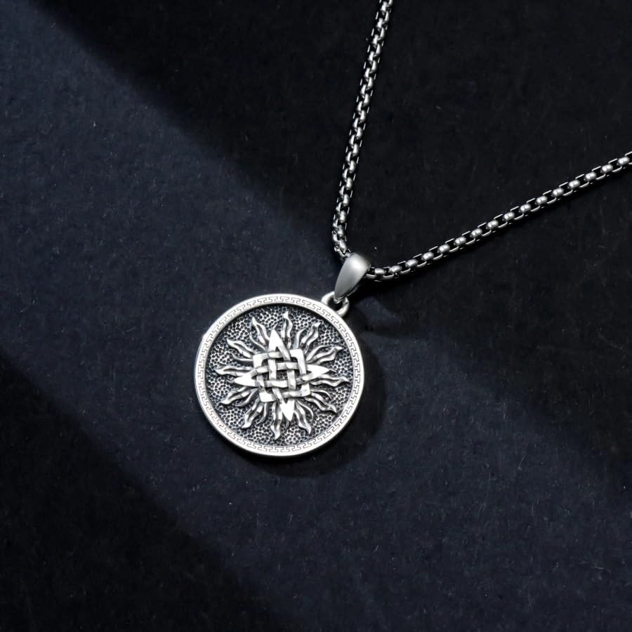 PELOVNY Sun Necklace 925 Sterling Silver Tiger Eye/Alatyr/Sunflower/Golden Jade Pendant Amulet Jewelry for Anniversary Birthday Christmas Gifts Men Women