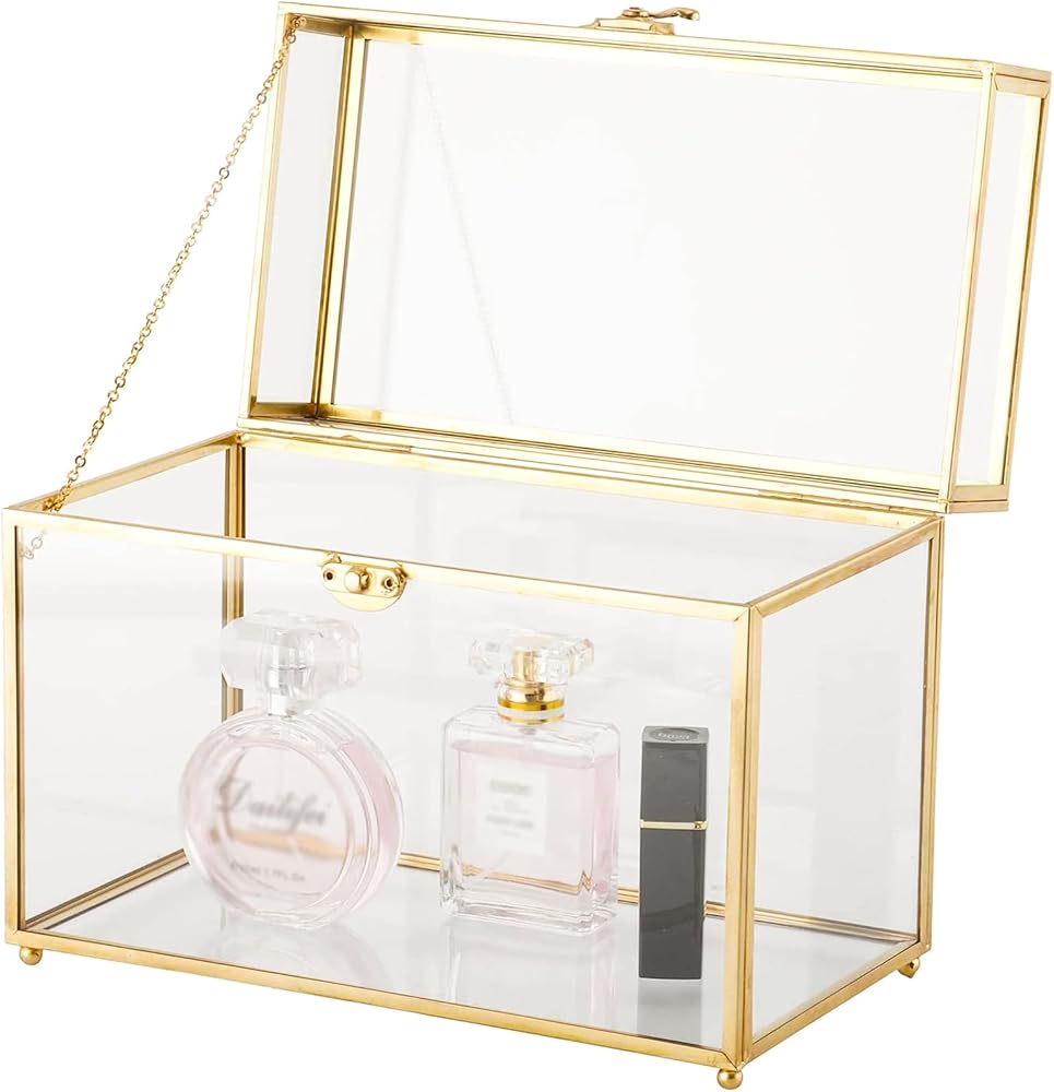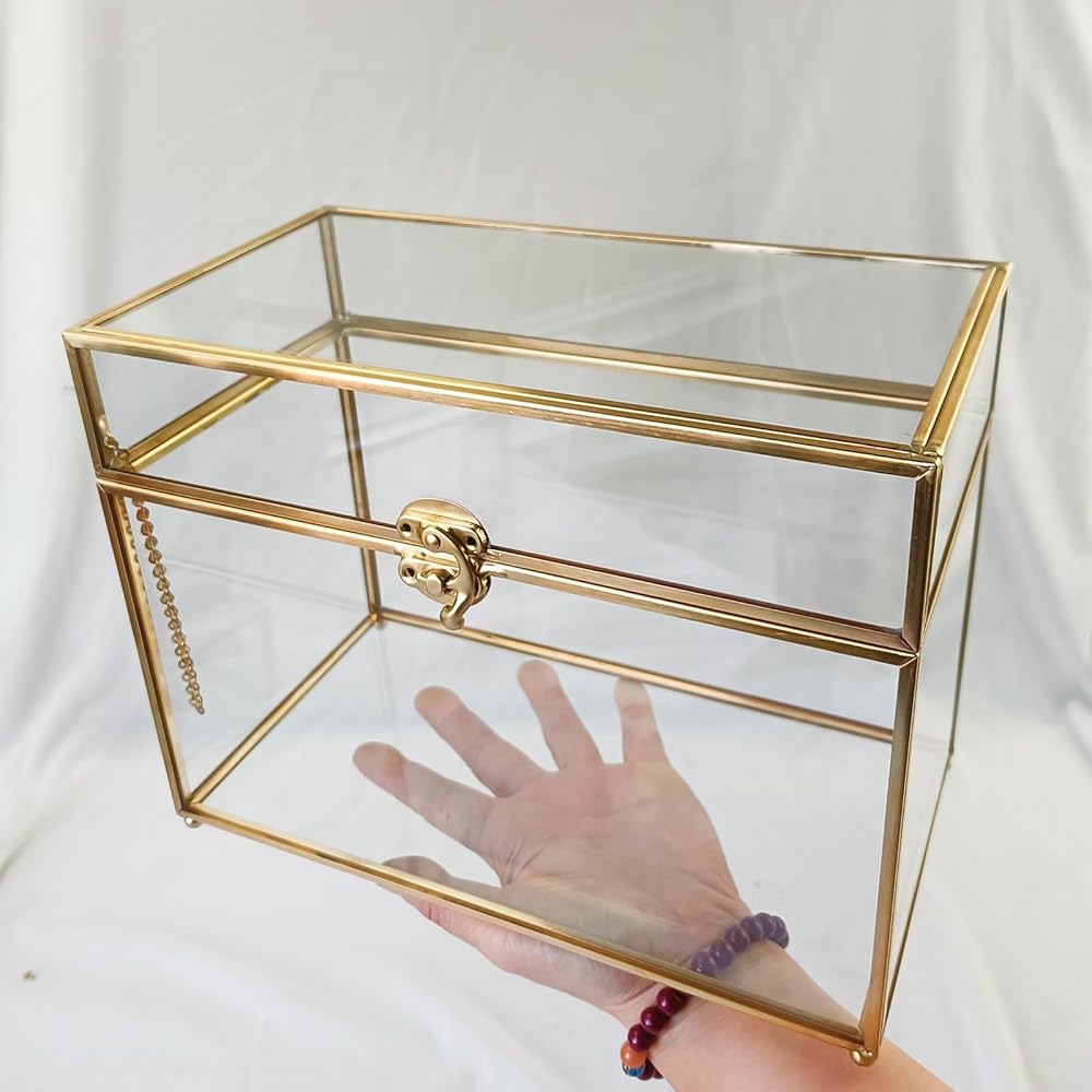Clear Glass Card Box - The clear glass construction allows for a beautiful display of your wedding cards while also letting guests see the contents inside. the stylish design adds a touch of sophistication to any space, making it an ideal addition to your home or wedding decor.