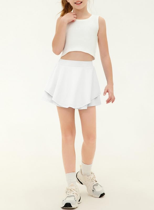 2-in-1 Sports Skorts: Girls skirts feature a double-layer design, the flowing outer layer hem brings a chic and fashionable look, and the elastic inner shorts provide more coverage, protect privacy, and allow greater freedom of movement. This stylish and comfortable girls tennis skirts is a great addition to every girl's summer wardrobe.