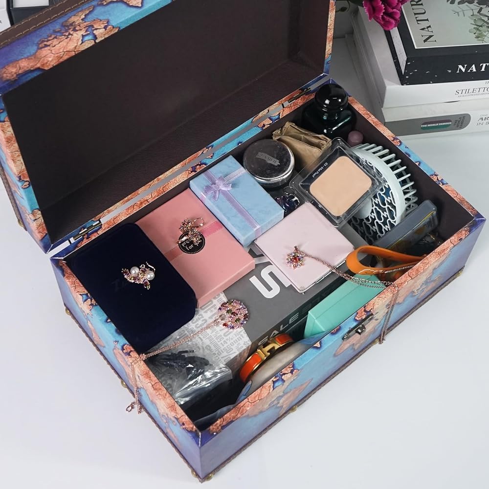 Cute look easy to match your interior decor, patriotic US flag box for table and shelf, find your jewelry in seconds by storing them in the chest, large storage room for jewelry keepsakes trinkets cigar cards coins candy coffee cookie keys, spacious wide box for photo letters documents, used as memory box and other sentimental memorable object