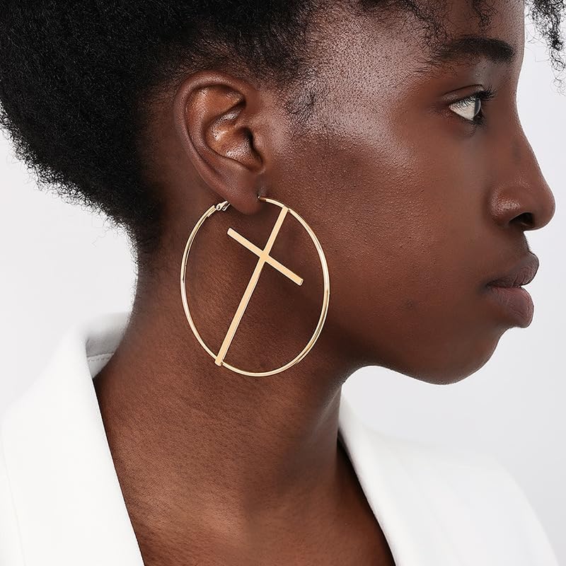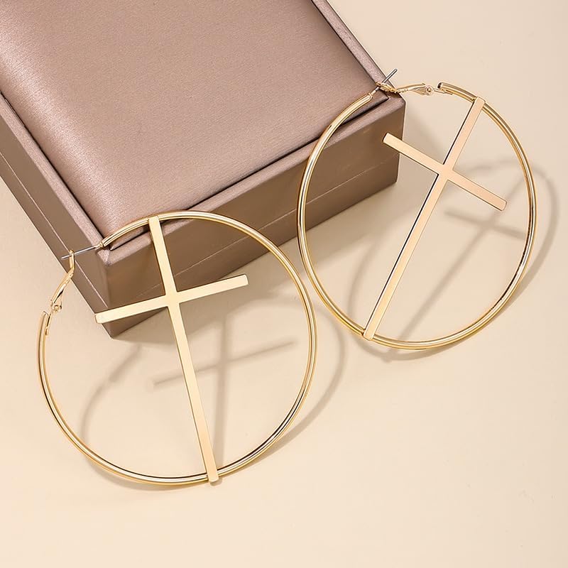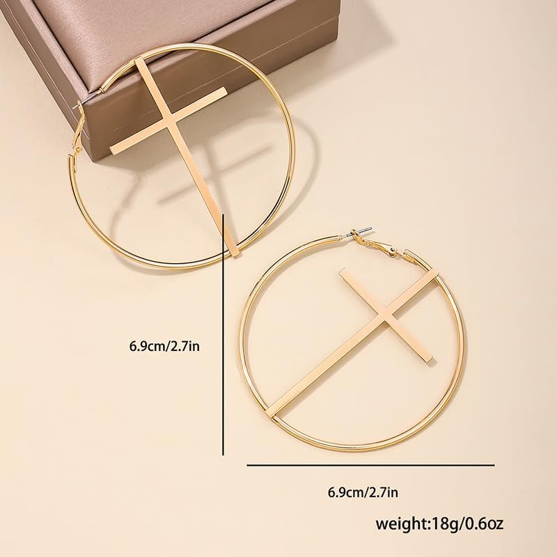 WLL Cross Hoop Earrings Big Circle Hoop Earrings Gold Hoops Earrings for Women Christian Jewelry